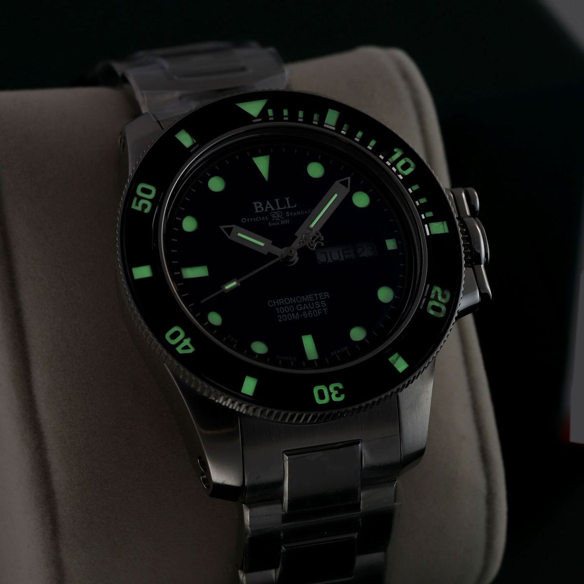 Movement: Powered by a Ball Watch caliber RR1102-CSL (base ETA 2836-2), COSC Certified Chronometer, patented SpringLOCK® hairspring & SpringSEAL® regulator anti-shock systems, beats at 28,800 vph (4Hz), and has a power reserve of +/- 38 hours.