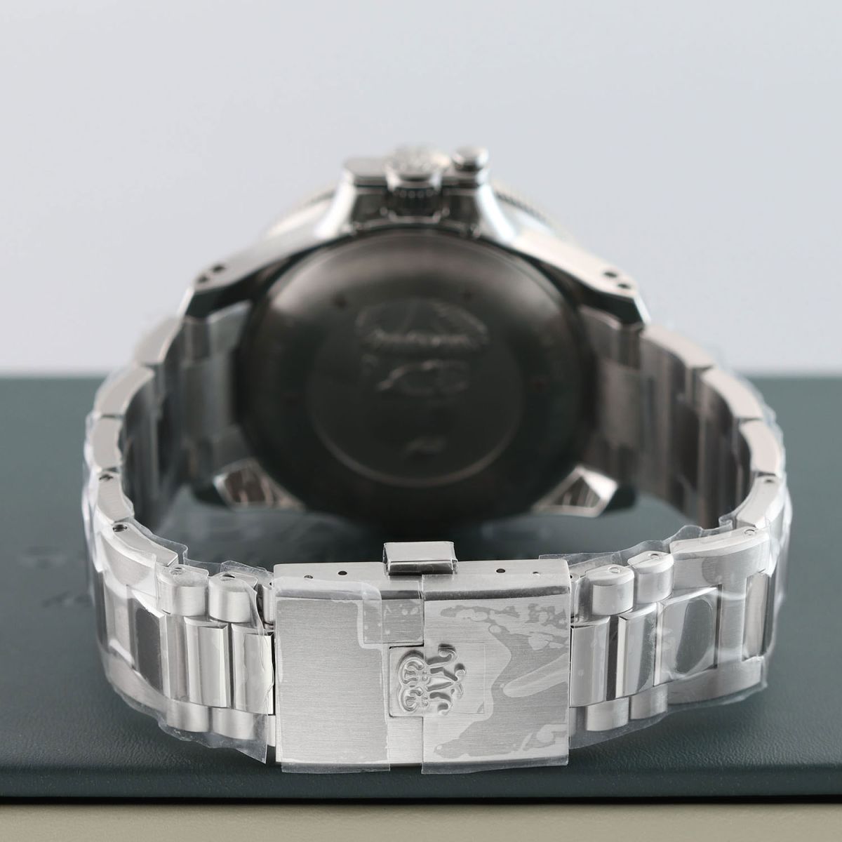 Condition: This watch is in unworn condition, with some of its original factory protective stickers intact. The watch is delivered in its original box and with all papers (warranty card & chronometer card) & hang tags.