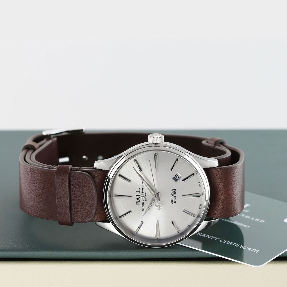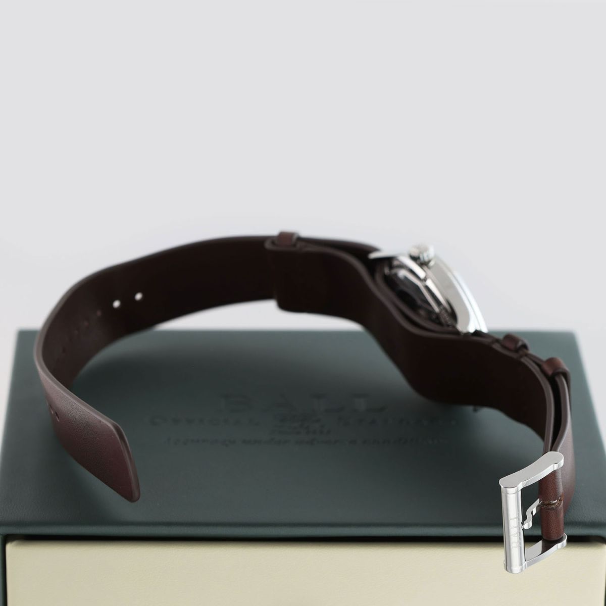 Strap: Fitted on its original BALL Watch NATO style brown calfskin leather strap with a stainless steel tang buckle. The strap is brand new & unworn with its full wear lifespan remaining.