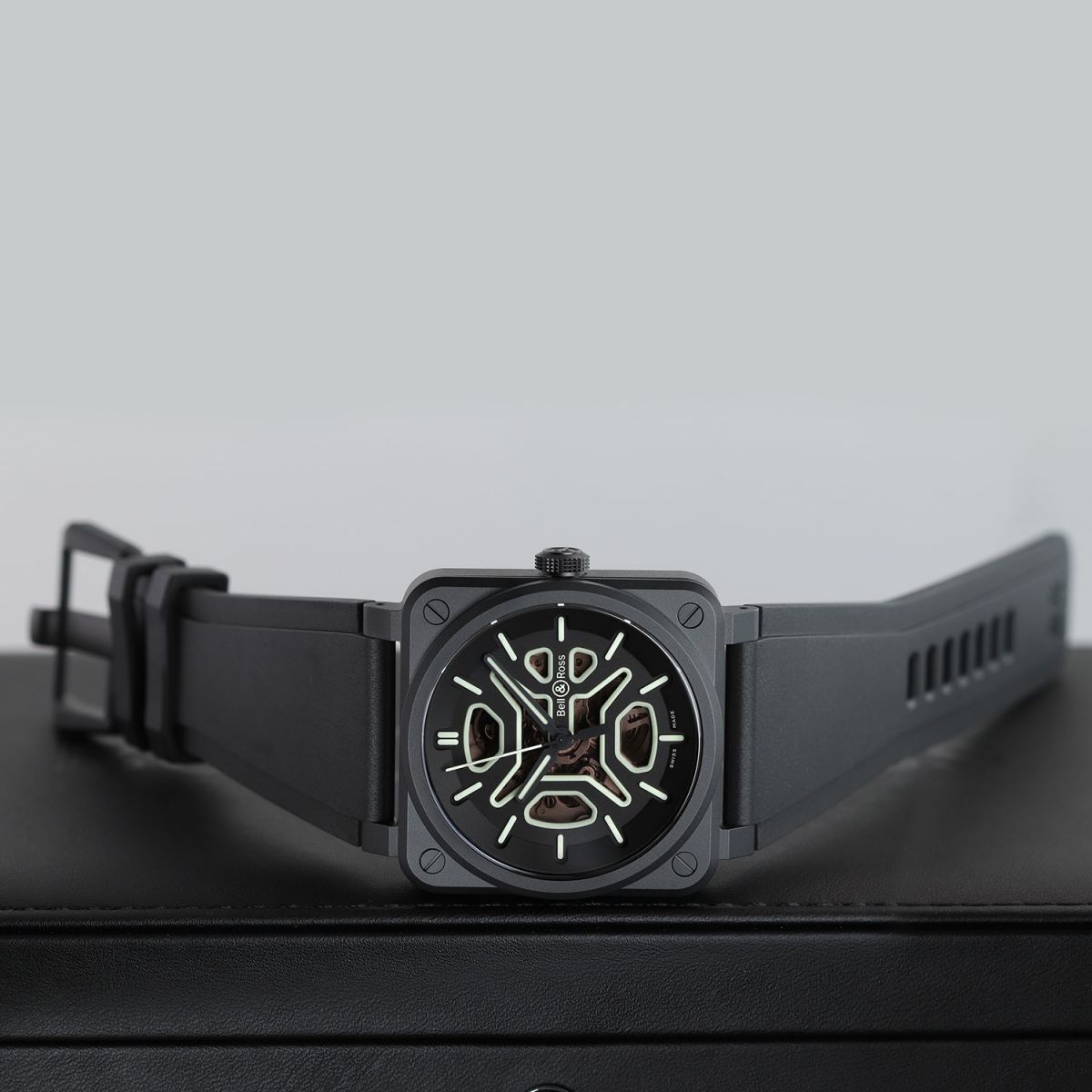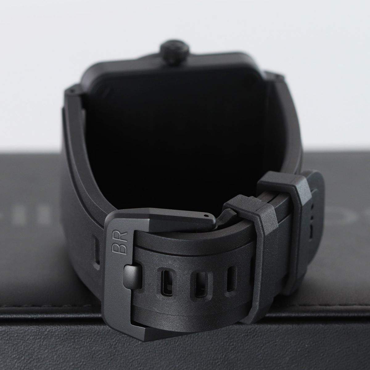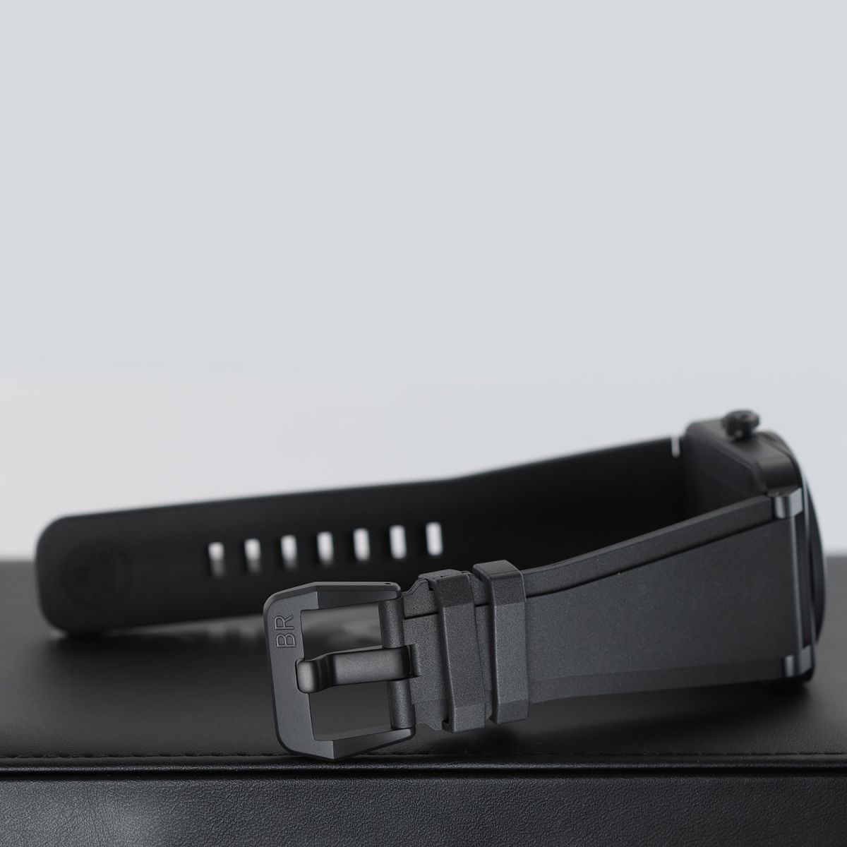 - Fitted on its original Bell & Ross black rubber strap with a stainless steel tang buckle. This strap is unworn in new condition with its full wear lifespan remaining.