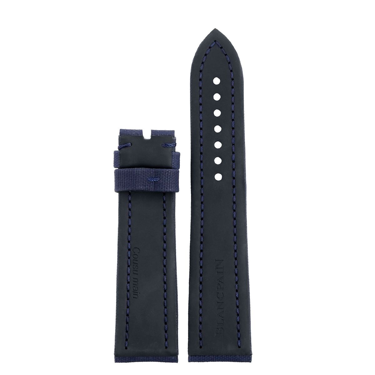Genuine LONG Blancpain blue sailcloth strap.