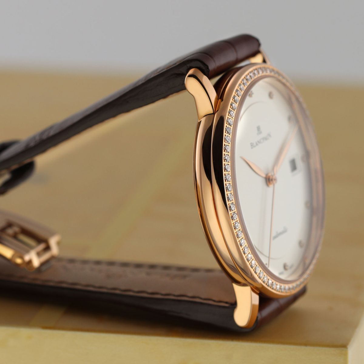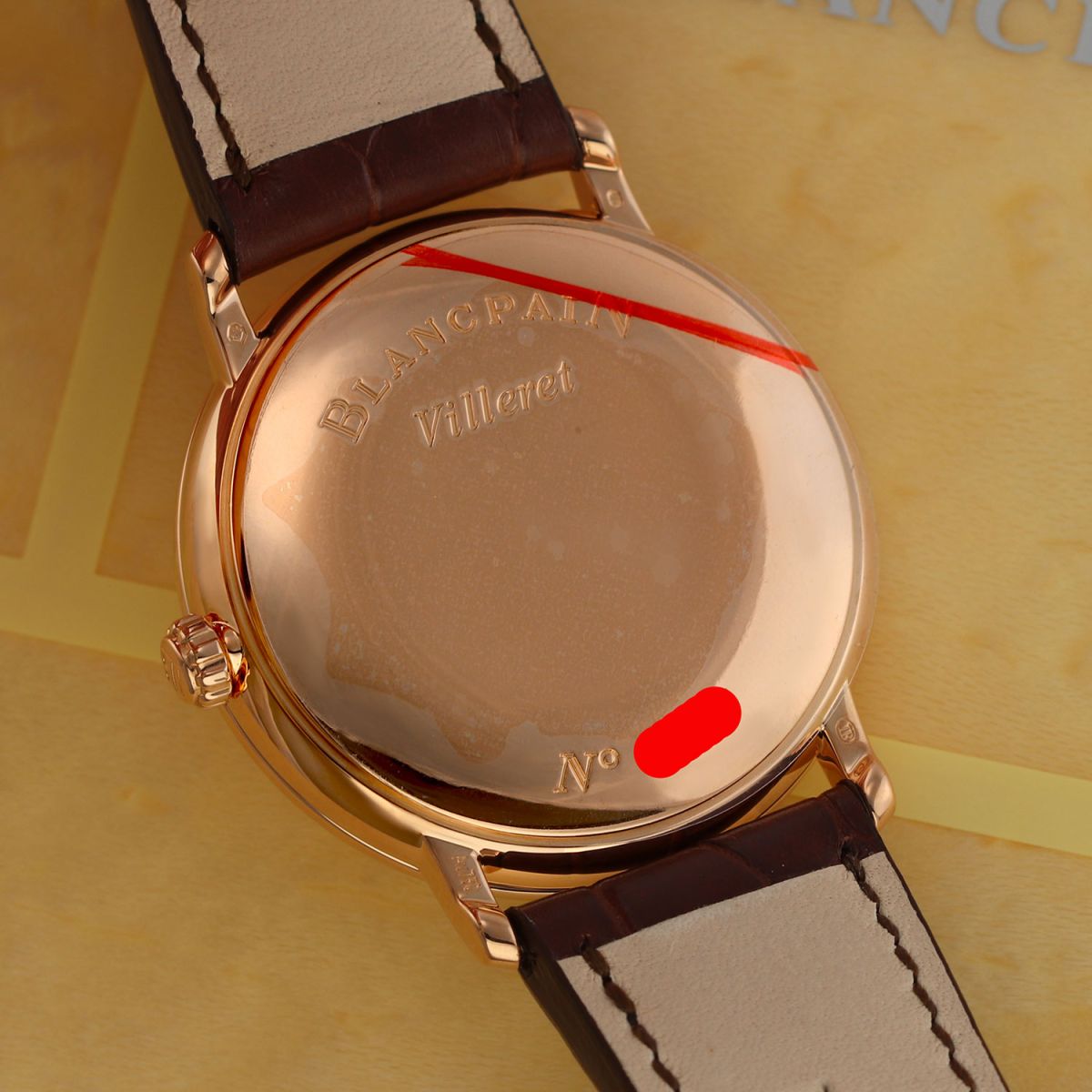 - Fitted on a Blancpain original brown alligator leather strap with a solid 18kt rose gold deployant buckle. The strap is in unworn condition with its full wear lifespan remaining.