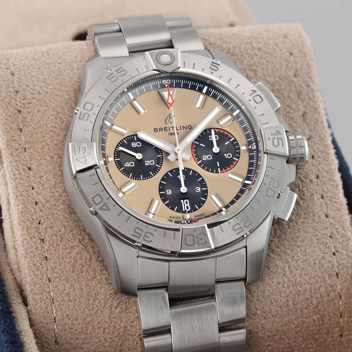 Movement: Powered by a Breitling in-house caliber 01, which beats at 28,000 vph (4Hz), contains 40 jewels, and has a power reserve of +/- 70 hours.