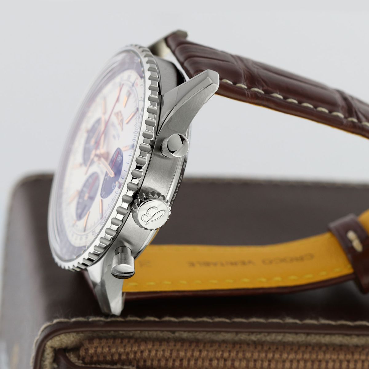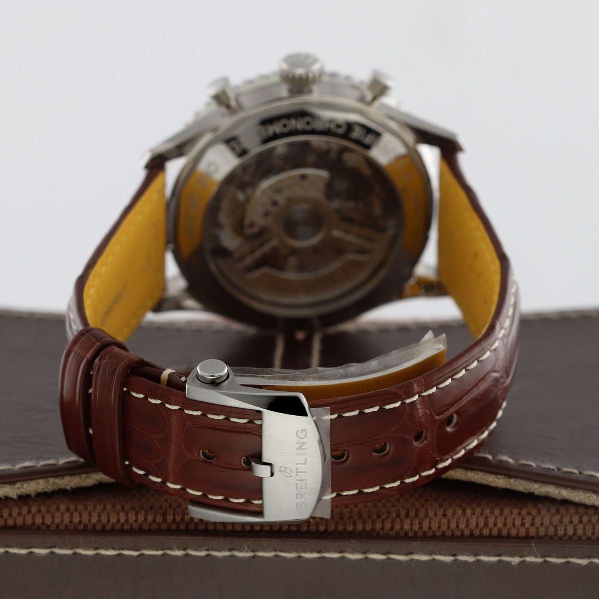 - Fitted on its original Breitling brown alligator leather strap with contrasting off-white stitching & a stainless steel push button deployant clasp. The strap is unworn, in new condition with its full wear lifespan remaining.