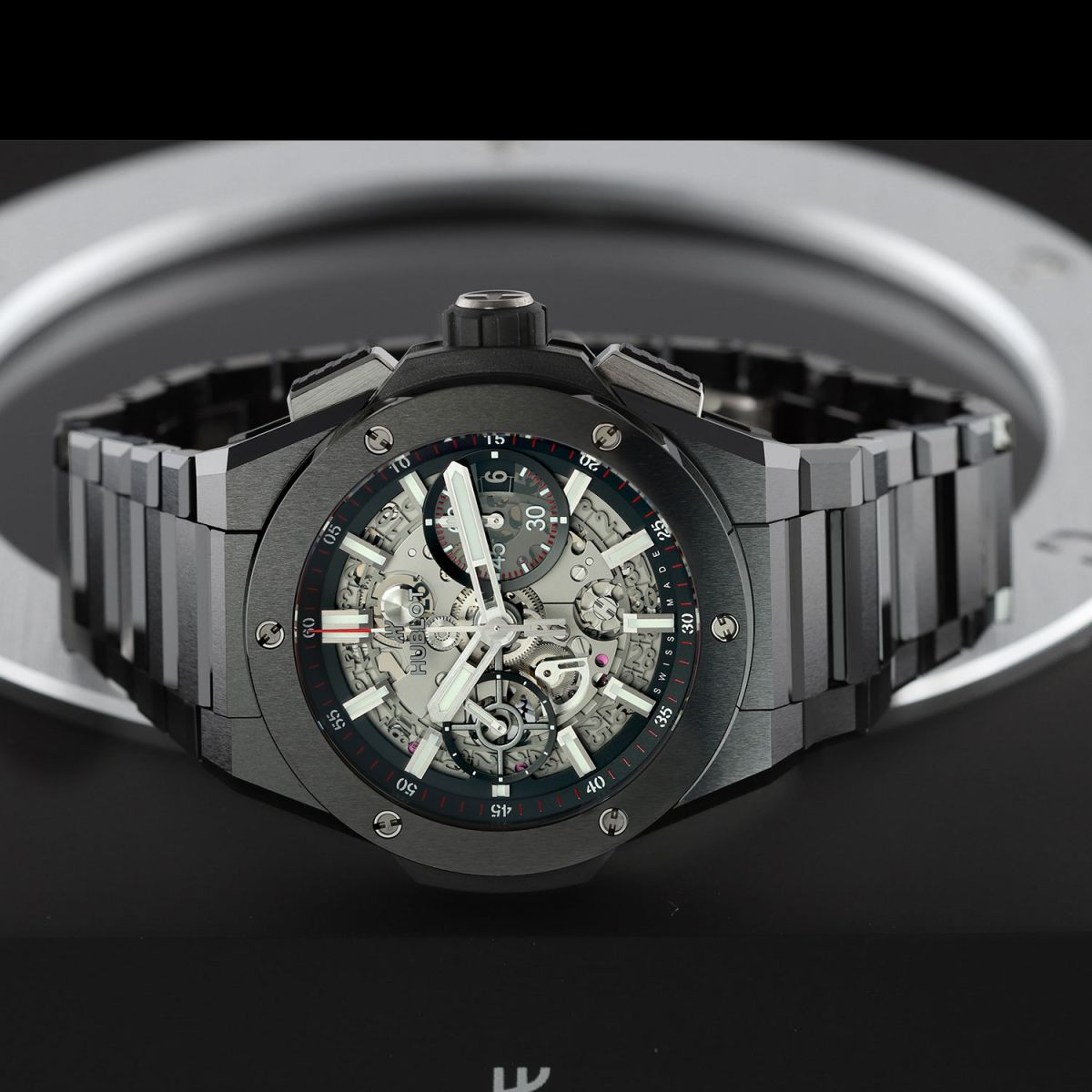 Bracelet: Fitted on its Hublot original brushed & polished black ceramic bracelet with push-button titanium hidden folding clasp. The bracelet is fully linked & will fit up to a 8.25" wrist.
