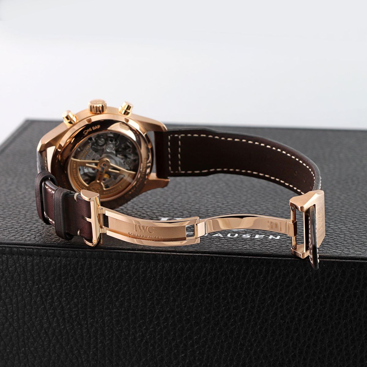 Strap: Fitted on its original IWC brown calfskin leather strap with contrasting off-white stitching and a solid 18kt rose gold tang buckle. The strap is in excellent, near new condition with the majority of it wear lifespan remaining. We would be comfortable rating the strap as in 97%+ condition.