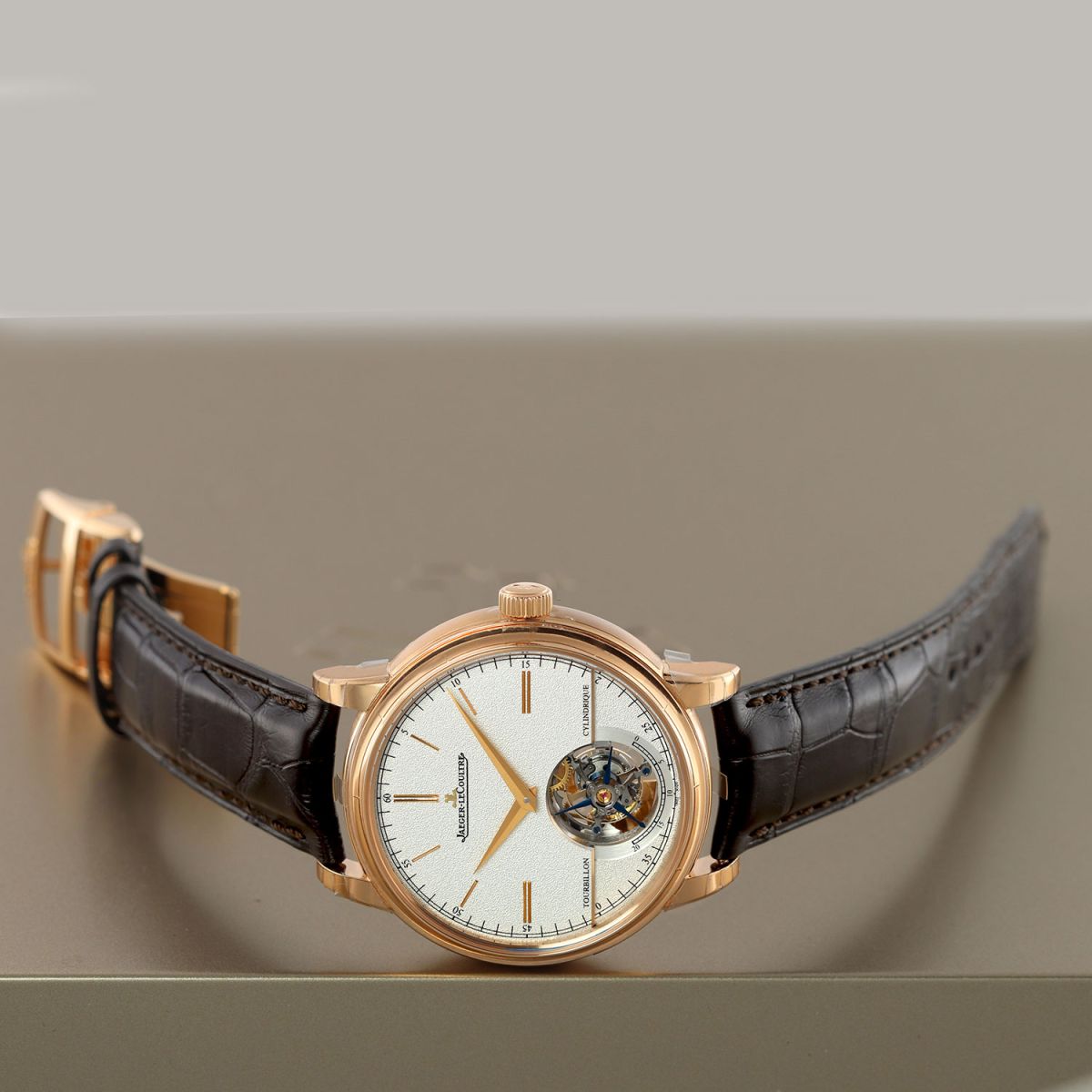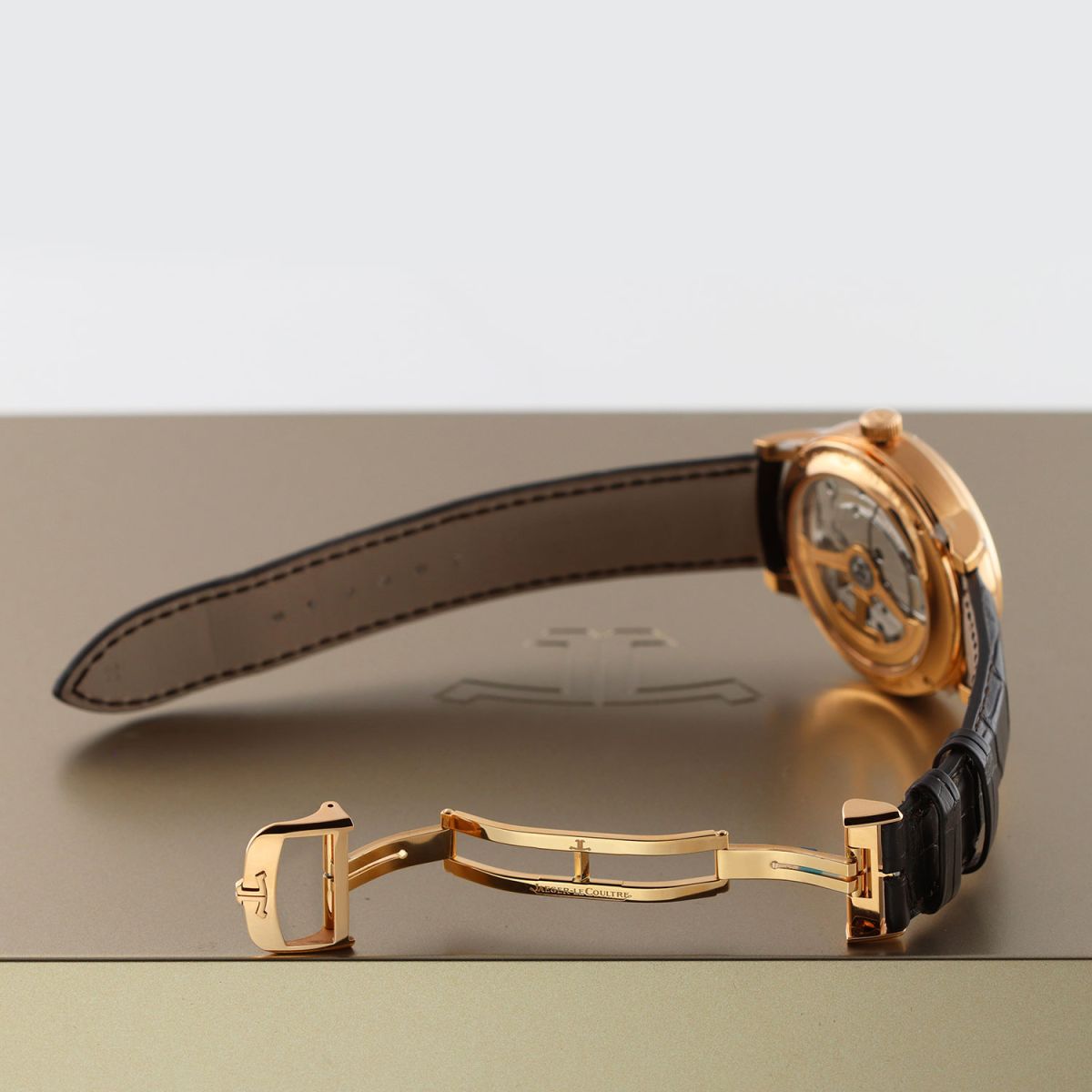 Strap: Fitted on its original JLC brown alligator leather strap with a solid 18kt rose gold deployant buckle. The strap is unworn and in near-new condition, showing only minimal handling signs, but with its full lifespan remaining. We would be comfortable grading the strap in 99%+ condition.