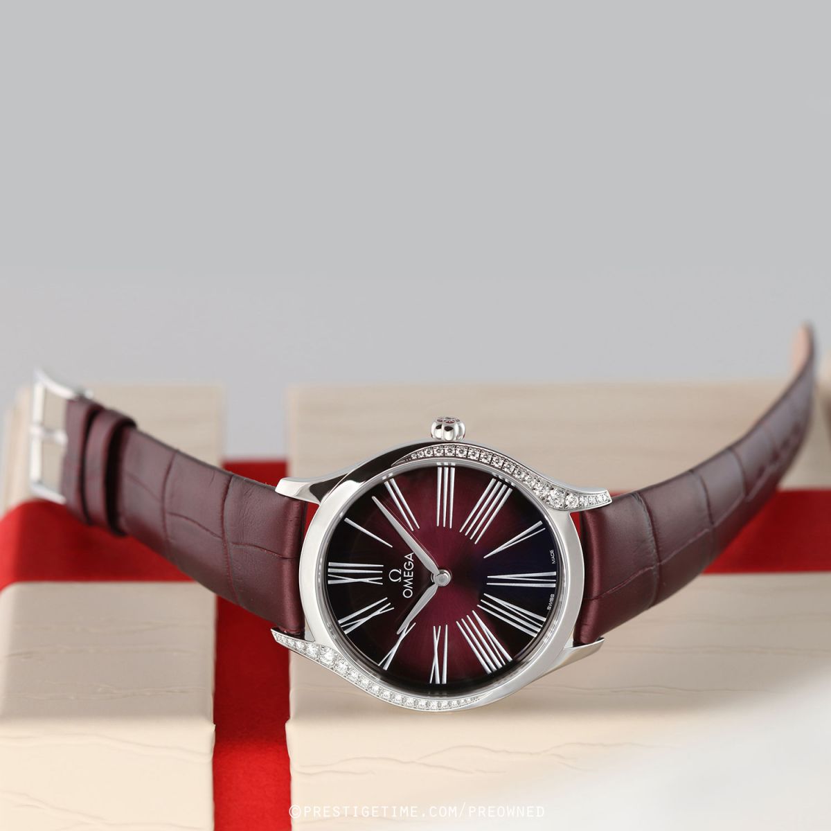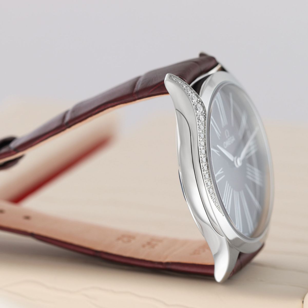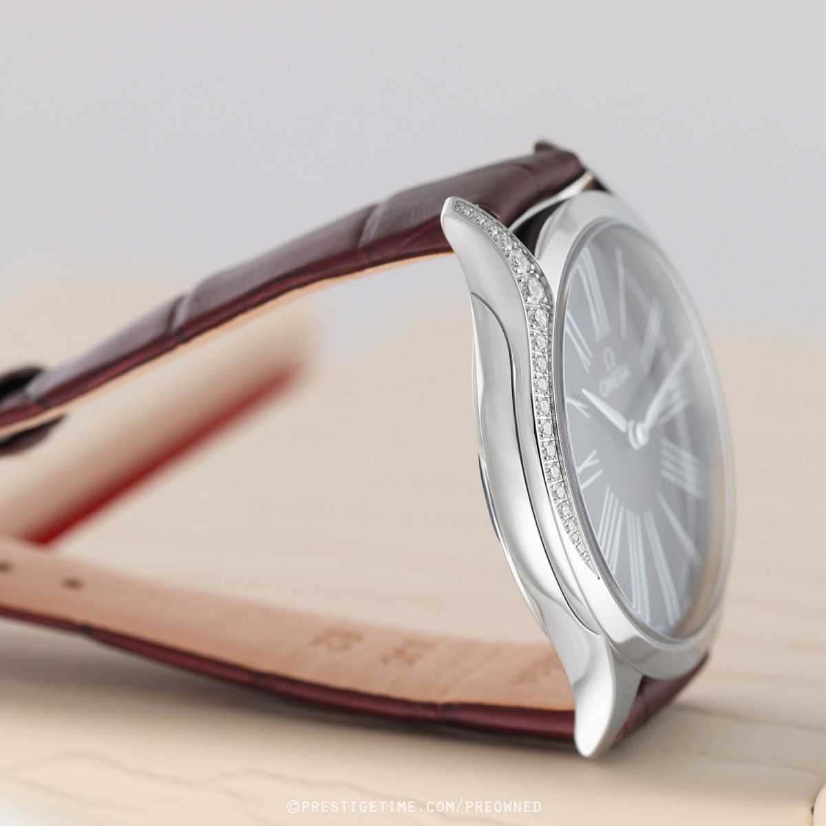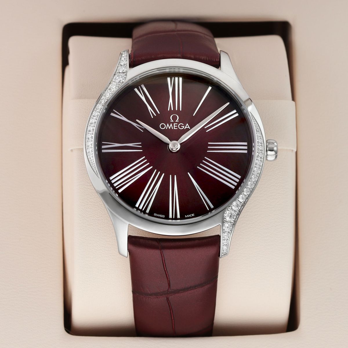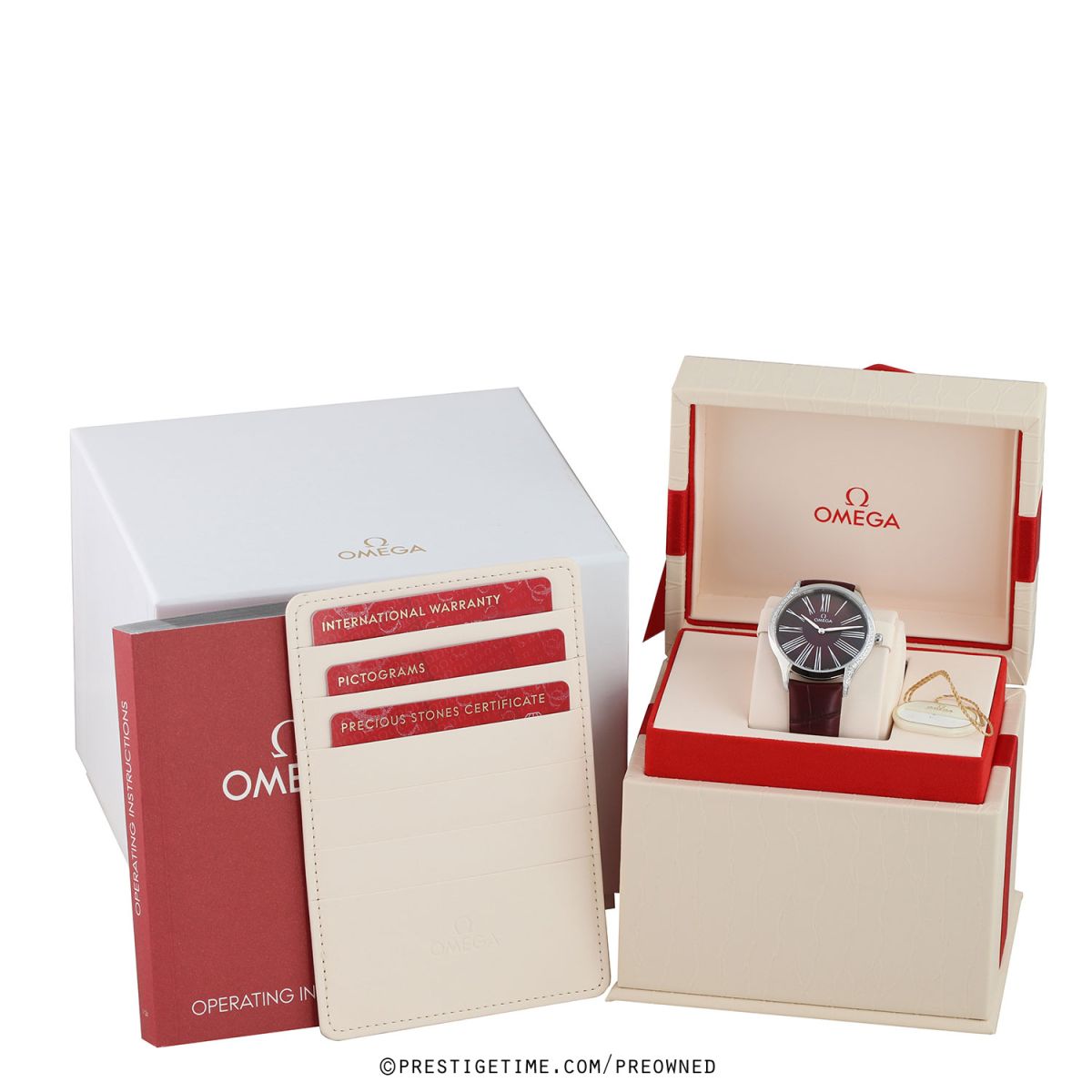 Strap: Fitted on its original Omega burgundy alligator leather strap with a polished stainless steel tang buckle. The strap is unworn in brand new & crisp condition, with it full wear lifespan remaining.