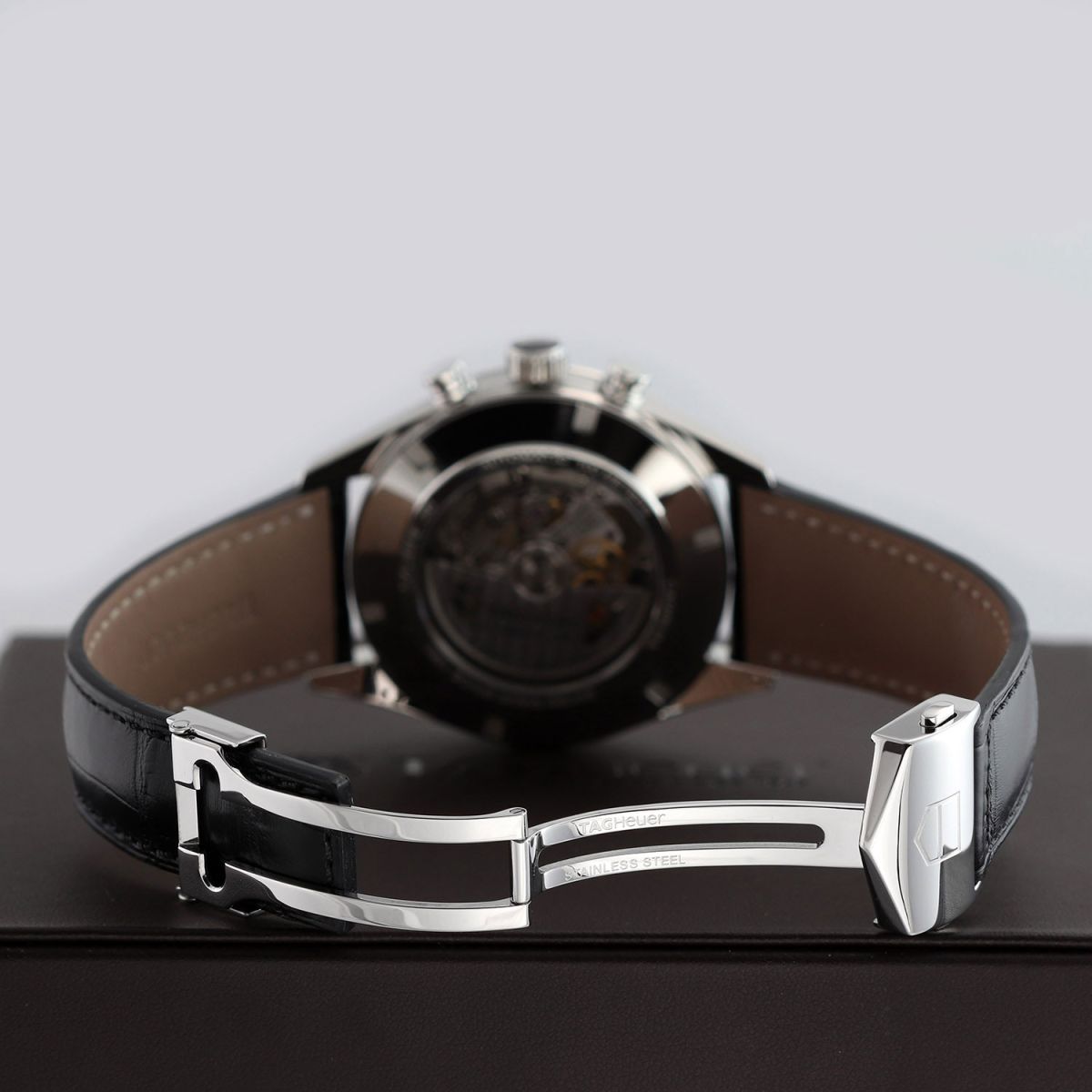 Strap: Fitted on its original TAG Heuer black alligator strap & a polished stainless steel push-button deployant buckle. The strap is in excellent near-new condition with the majority of its wear lifespan remaining. We would rate the strap in a 97% overall condition.