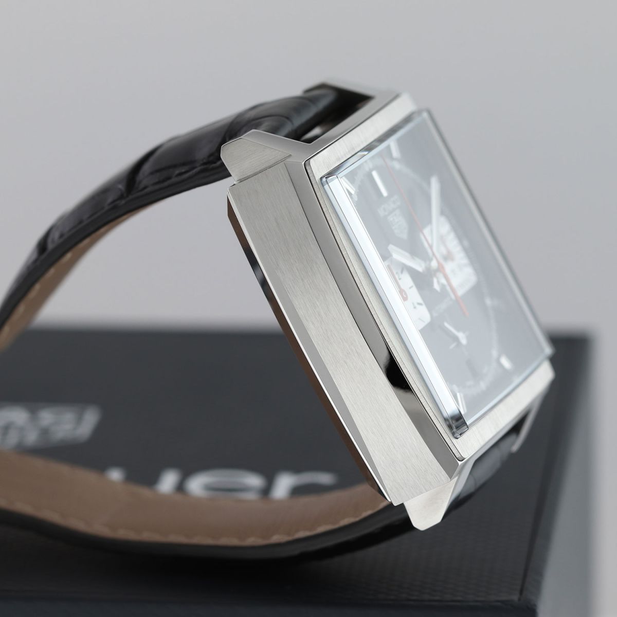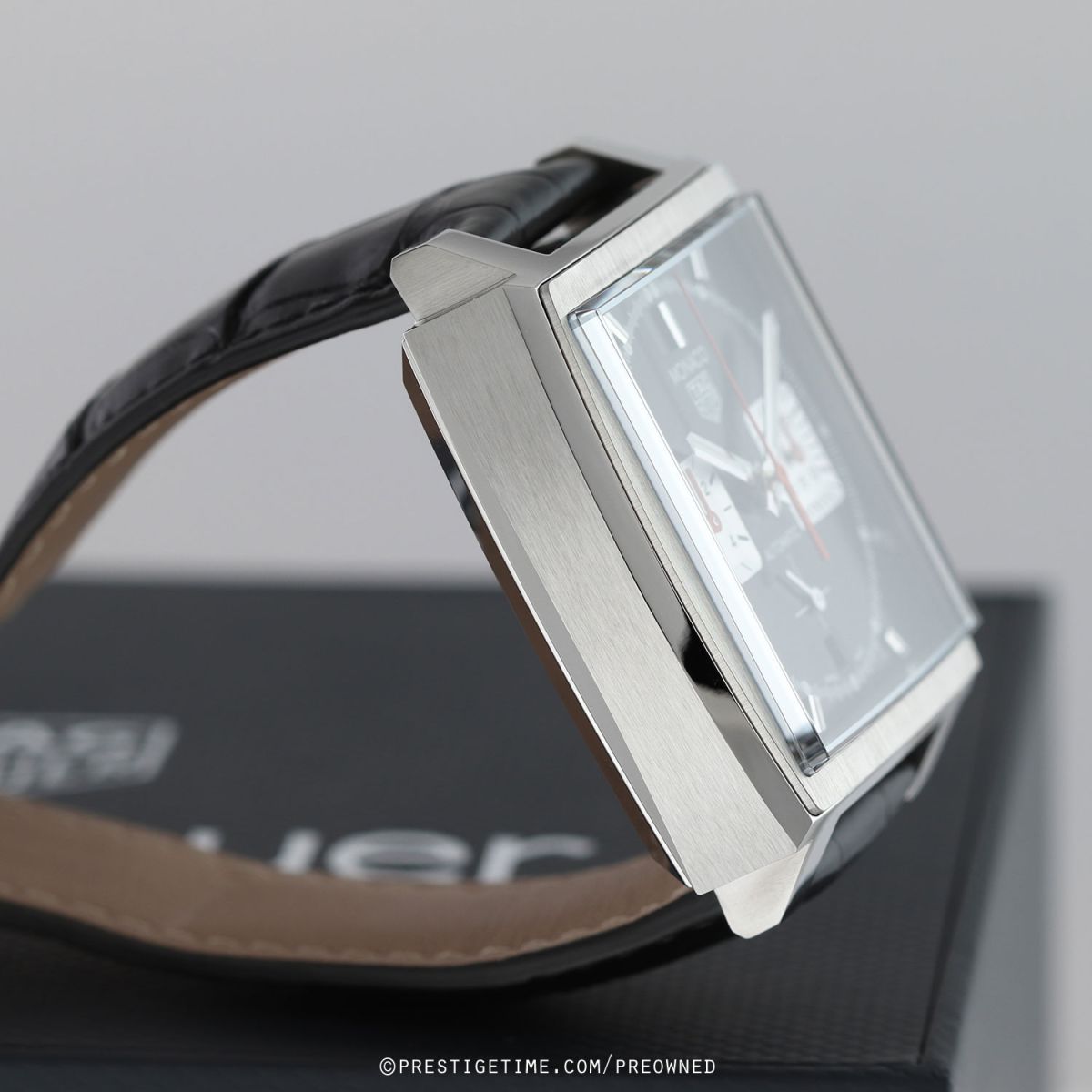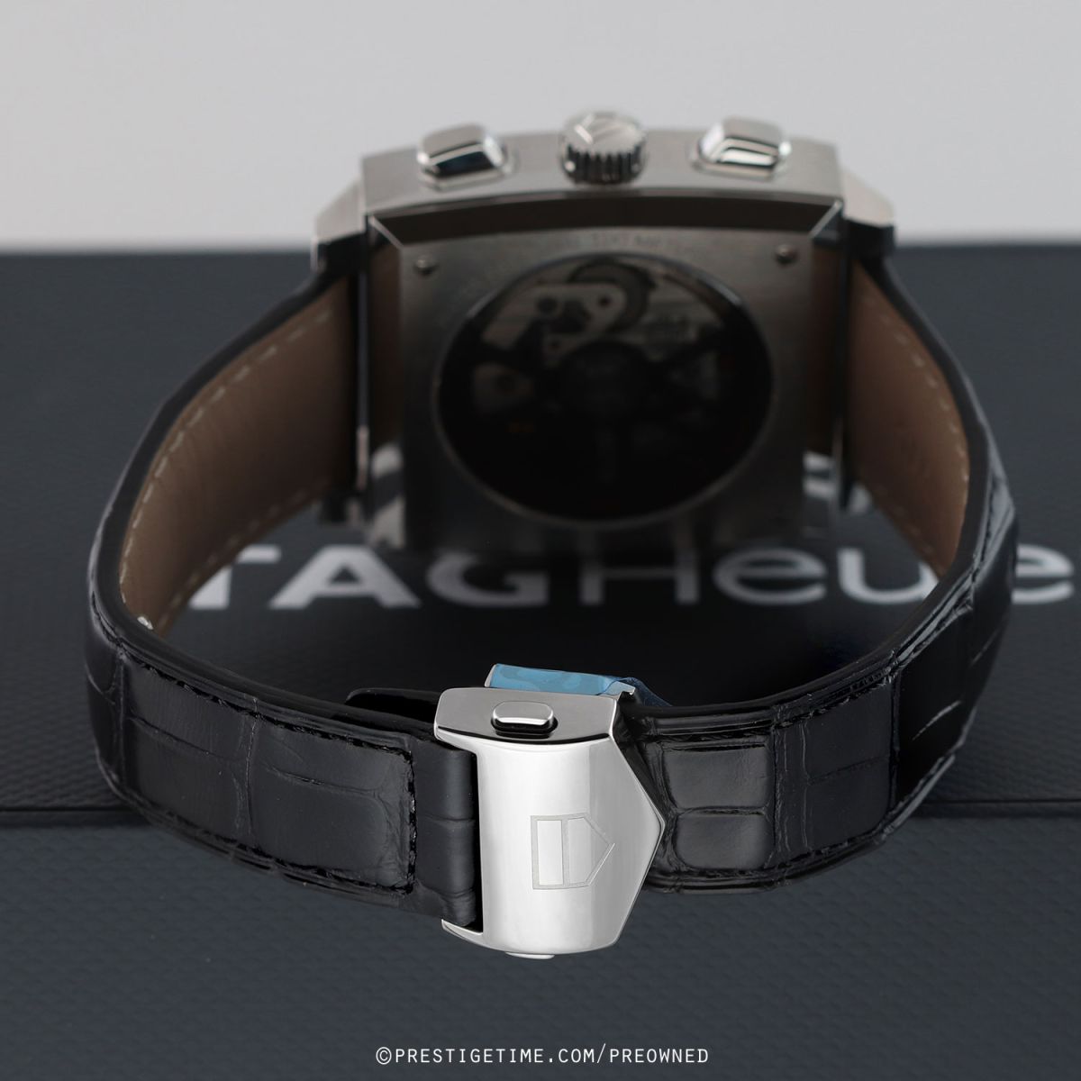 Strap: Fitted on its original TAG Heuer black alligator leather strap with a push-button stainless steel deployant buckle. The strap is unworn in new condition with its full wear life-span remaining.