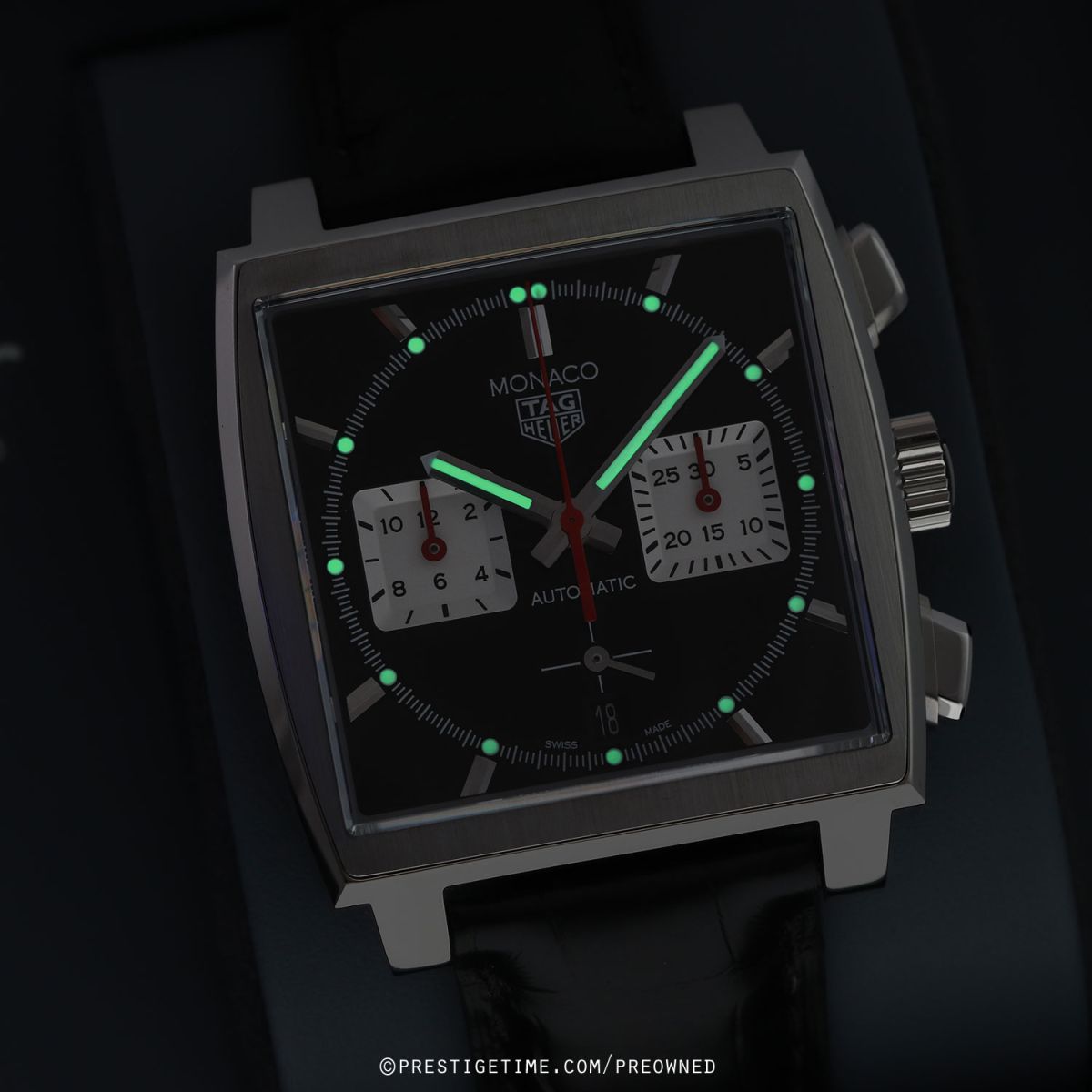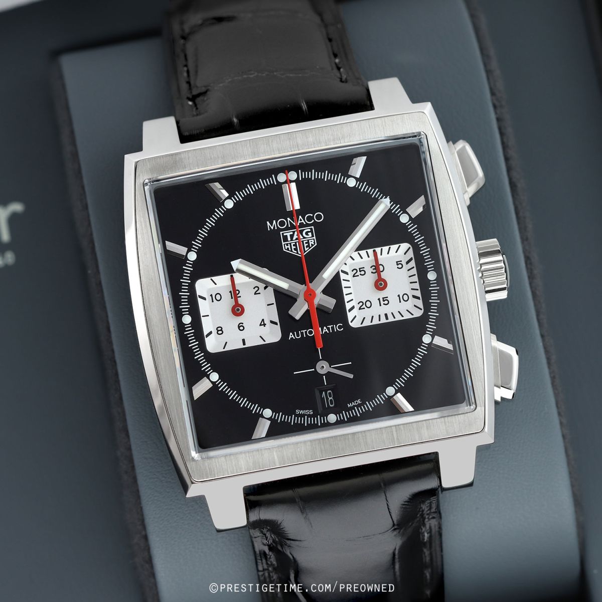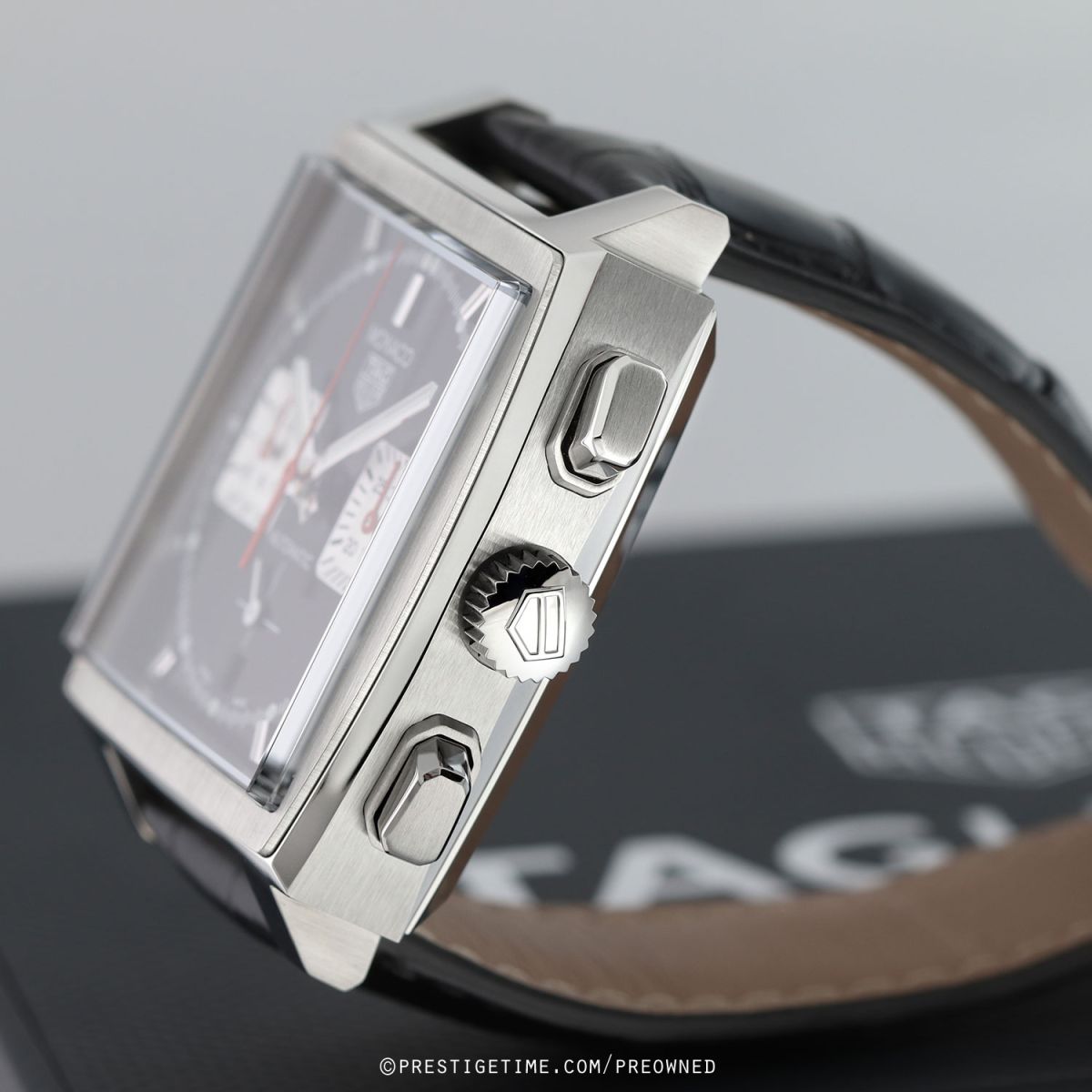 Strap: Fitted on its original TAG Heuer black alligator leather strap with a push-button stainless steel deployant buckle. The strap is unworn in new condition with its full wear life-span remaining.