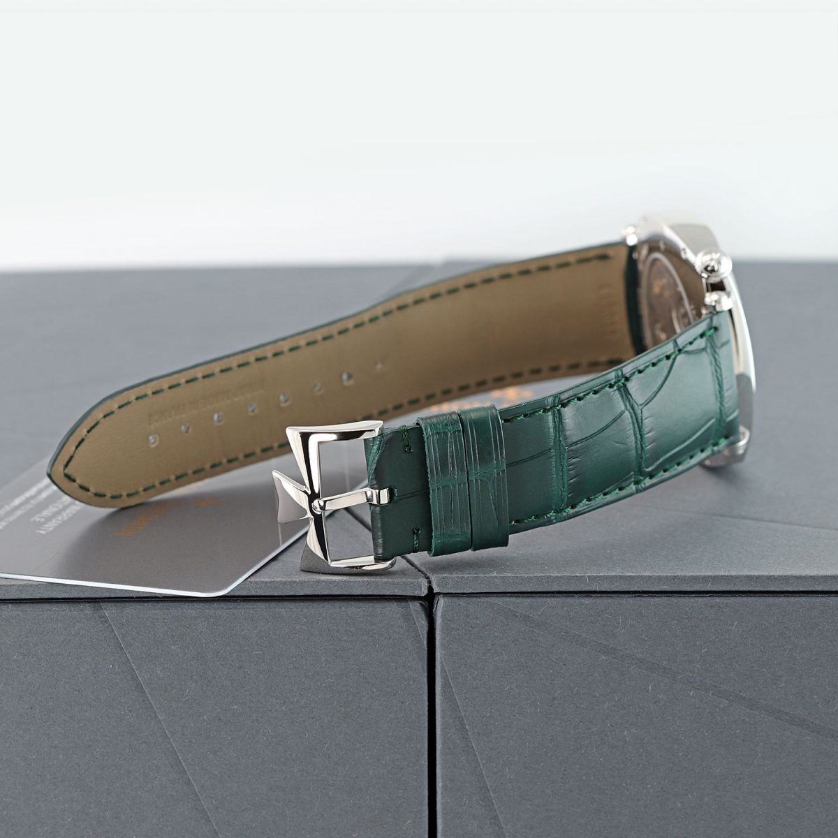 Strap: Fitted on its original Vacheron Constantin green alligator leather strap with a solid 950 platinum tang buckle. The strap is in excellent, near new condition with its full wear lifespan remaining. We would be comfortable rating the strap as in 98%+ condition.