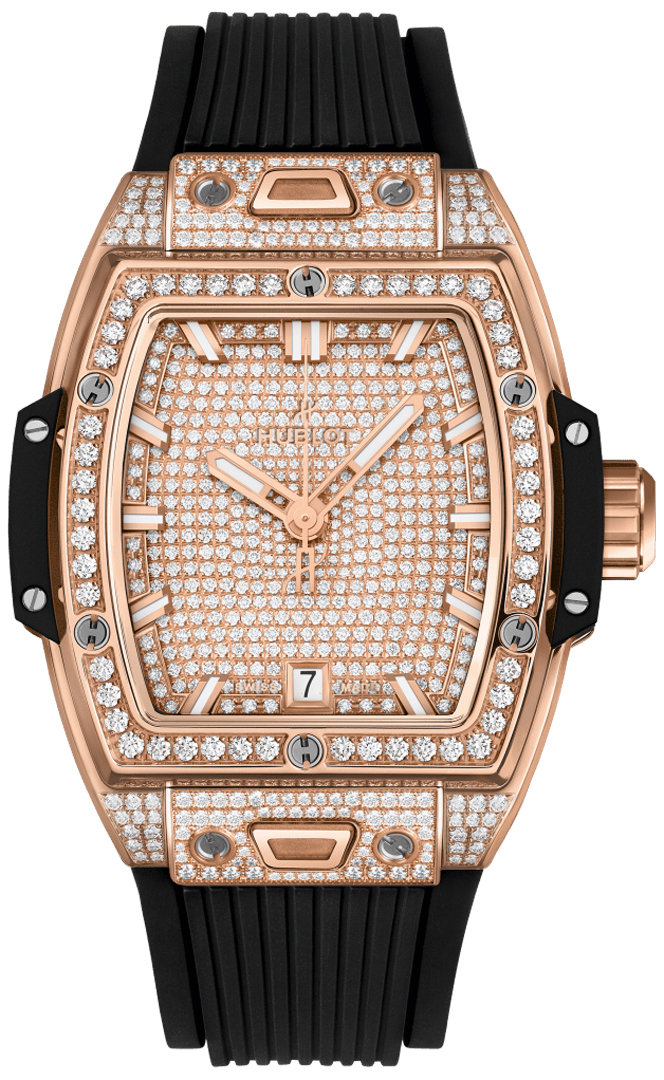 Polished 18kt King Gold (rose gold) case set with 164 diamonds.
