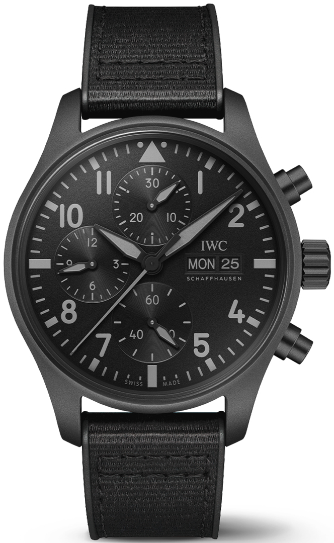 • Case: ceratanium - matte, made of iwc's developed ceramic & titanium material• Crown: ceratanium• Bezel: ceratanium, matte• Dial: black - matte• Hour Markers: painted, darkened grey, numeral & index combination, luminous• Hands: black, luminous• Seconds hand: sub-dial at 6 o'clock, luminous• Date: window at 3 o'clock• Calibre: IWC calibre 69385, beats at 4Hz/28800 vph, 33 jewels, power reserve of 46 hours (2 days)Watch functions:• Chronograph: Large central seconds counter hand, 30 minute counter sub-dial at 12 o'clock, 12 hour counter sub-dial at 9 o'clock.• Day/Date: at 3 o'clock.