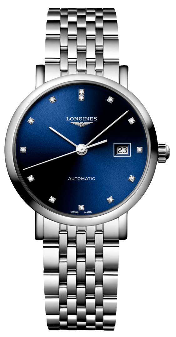 • Case: stainless steel - polished• Dial: blue - sunray• Hour Markers: diamond, dial set with 13 top wesselton vs-si diamonds, for a total of 0.029 carats• Date: window at 3 o'clock• Calibre: Longines calibre L592, beats at 4Hz/28800 vph, 22 jewels, power reserve of 45 hours (2 days)