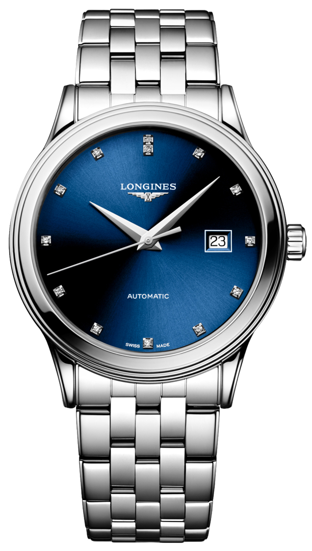 • Case: stainless steel - polished• Bezel: fixed, stainless steel• Dial: blue - sunray• Hour Markers: diamond, dial set with 13 top wesselton vs-si diamonds, for a total of 0.059 carats• Date: window at 3 o'clock• Calibre: Longines calibre L888, beats at 3Hz/25200 vph, 21 jewels, power reserve of 72 hours (3 days)