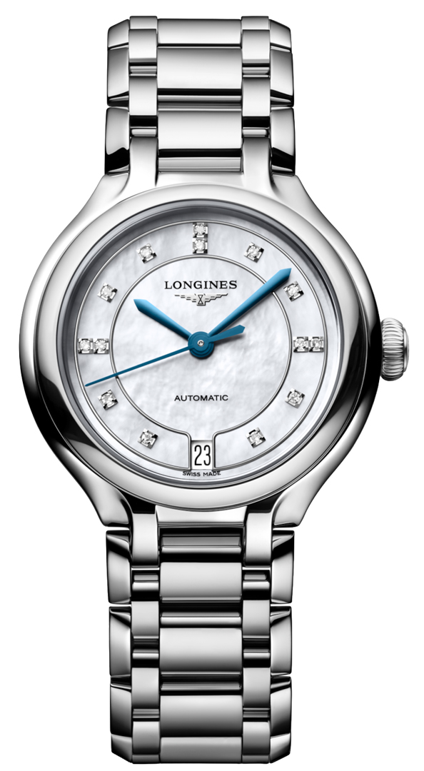 • Case: stainless steel - polished• Crown: stainless steel• Bezel: stainless steel, polished• Dial: mother of pearl• Hour Markers: diamond, set with 14 top wesselton vs-si diamonds 0.060 carats• Hands: polished, blued steel• Seconds hand: central large hand• Date: window at 6 o'clock• Calibre: Longines calibre L888, beats at 3Hz/25200 vph, 21 jewels, power reserve of 72 hours (3 days)Watch functions:• Moonphase: At 6 o'clock.