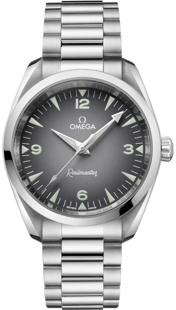 • Case: stainless steel - brushed & polished• Crown: stainless steel• Bezel: stainless steel, polished• Dial: grey - gradient• Hour Markers: painted, white, numeral & index combination, luminous• Hands: polished, luminous• Seconds hand: central large hand, luminous• Calibre: Omega calibre 8806, beats at 3.5Hz/25200 vph, 35 jewels, power reserve of 55 hours (2 days)