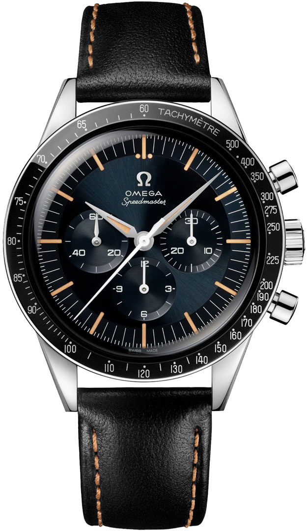 • Case: stainless steel - brushed & polished• Case back: Features the Seahorse medallion. Engraved with the words “THE FIRST OMEGA IN SPACE” and “OCTOBER 3, 1962"• Bezel: fixed, black, stainless steel and aluminum, polished• Dial: blue-grey - stepped. applied vintage omega logo.• Hour Markers: painted, index, luminous, vintage colored super-luminova• Hands: polished, luminous, vintage colored super-luminova• Seconds hand: sub-dial at 6 o'clock• Calibre: Omega calibre 3861, beats at 3Hz/21600 vph, 26 jewels, power reserve of 50 hours (2 days)Watch functions:• Chronograph: Large central seconds counter hand., 30 minute counter sub-dial at 3 o'clock., 12 hour counter sub-dial at 6 o'clock.