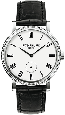 Patek caliber 215 PS, beats at 28,800 vph, contains 18 jewels, composed of 130 parts & with an approximate Power Reserve if 44 hours.