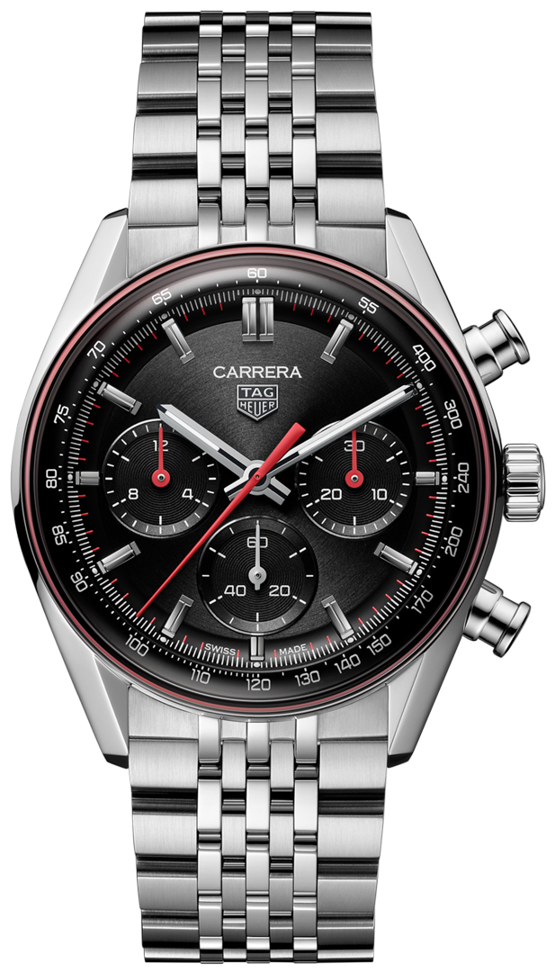 • Case: stainless steel - brushed & polished• Crown: stainless steel• Dial: black - brushed, circular brushed finish.• Hour Markers: applied, index, polished, luminous• Hands: polished, red chronograph hands., luminous• Dial flange: black with tachymeter scale• Seconds hand: sub-dial at 6 o'clock• Calibre: Tag Heuer calibre TH20-01, beats at 4Hz/28800 vph, 33 jewels, power reserve of 80 hours (3 days)Watch functions:• Chronograph: Column wheel chronograph., Large central seconds counter hand, 30 minute counter sub-dial at 3 o'clock, 12 hour counter sub-dial at 9 o'clock.