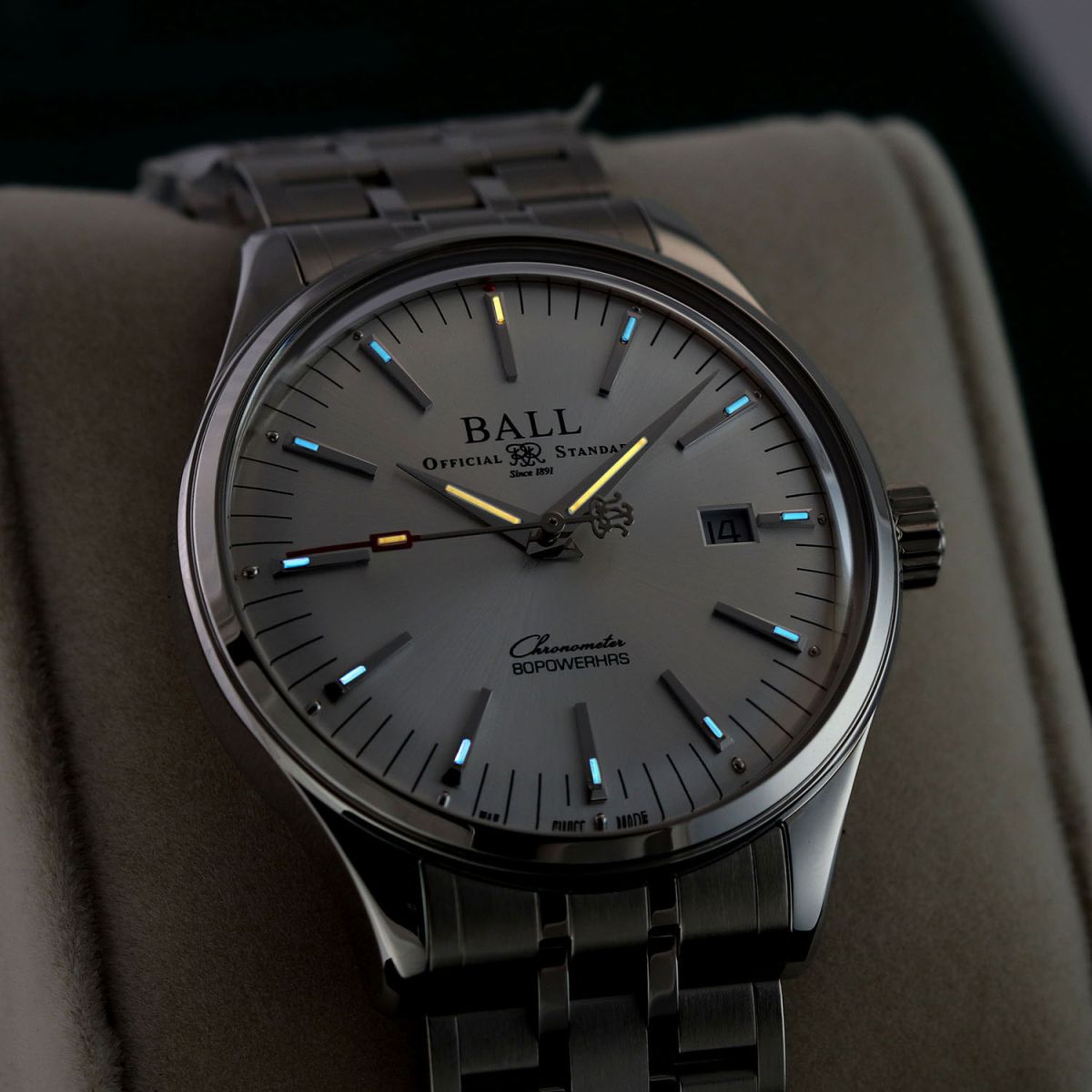 Movement: Powered by a Ball Watch in-house caliber RRM7309-C, COSC Chronometer certified, beats at 28,800 vph (4Hz), contains 25 jewels & has a power reserve of +/- 80 hours.
