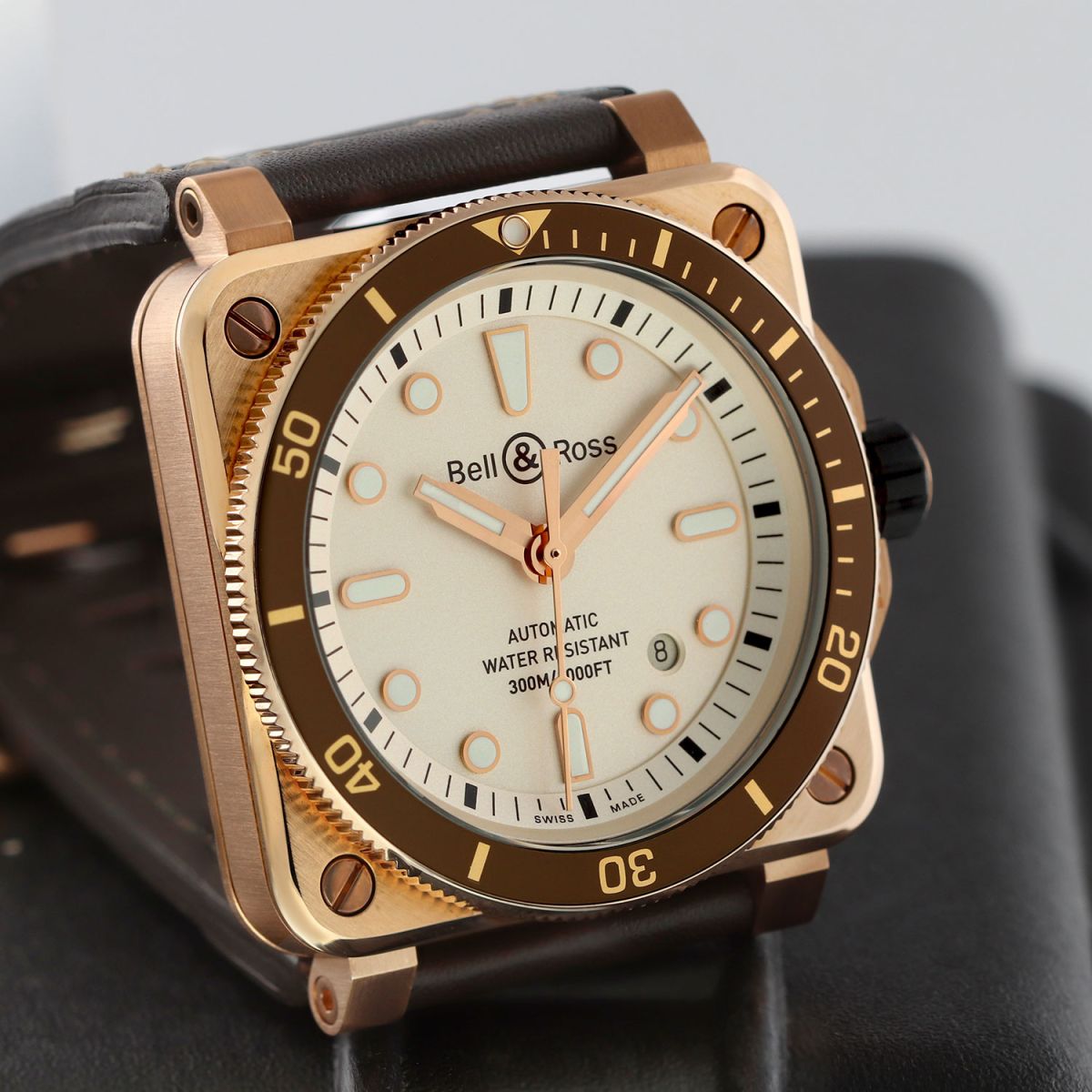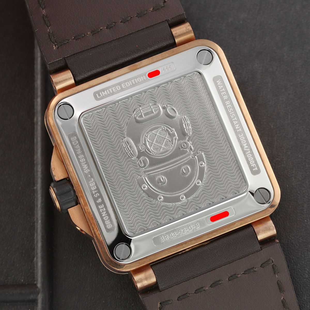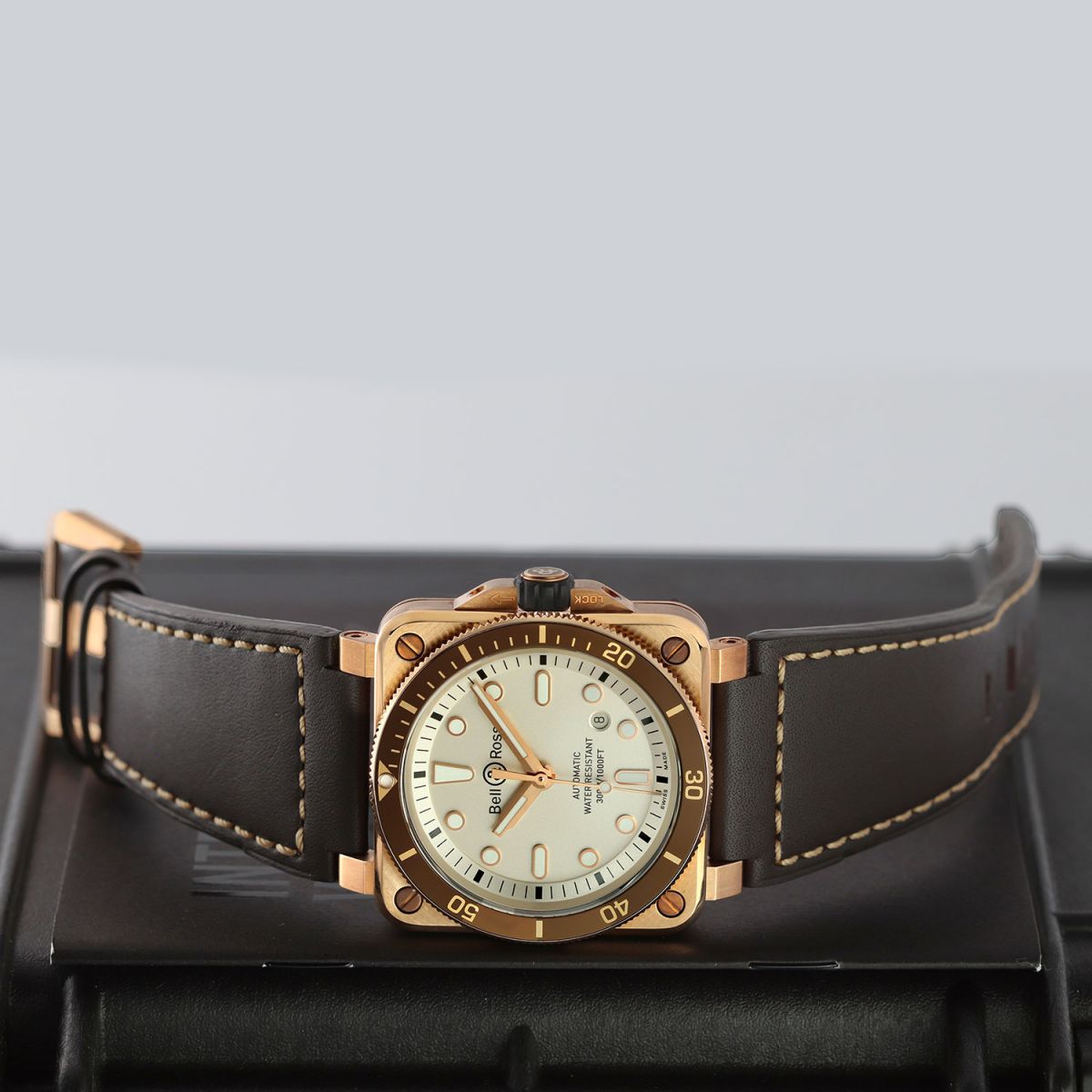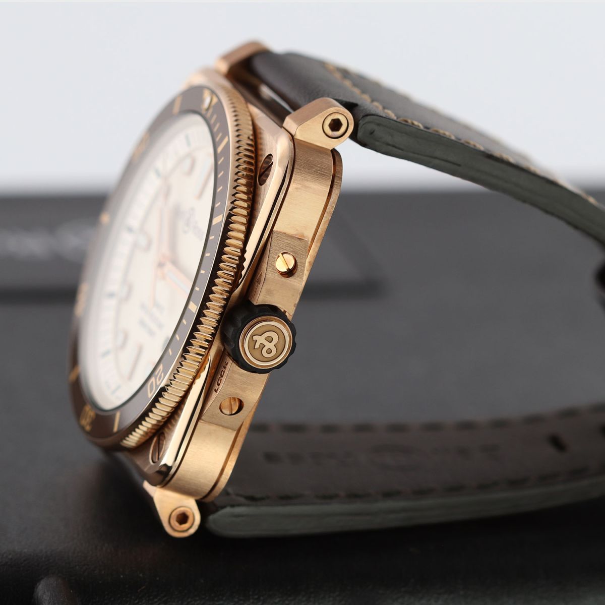 - Fitted on its original Bell & Ross brown calfskin leather strap with a bronze tang buckle. The strap is in excellent new condition with the vast majority of its wear lifespan remaining. We would be comfortable rating this strap as in 97%+ condition.