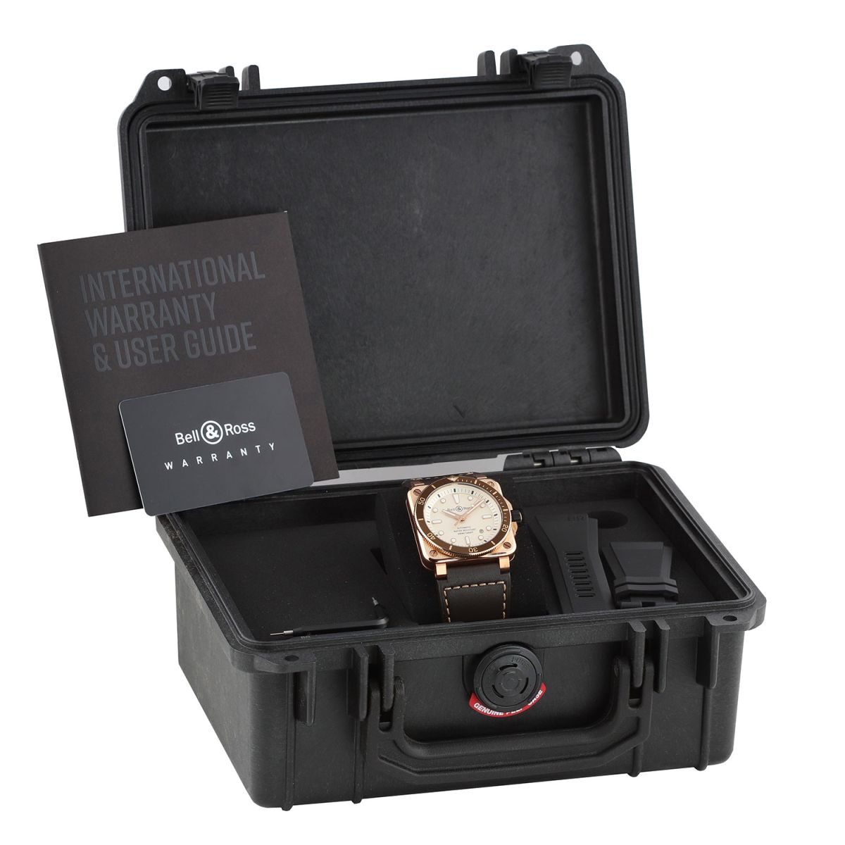 - Delivered with an additional Bell & Ross original black rubber strap. This strap is unworn in new condition with its full wear lifespan remaining.