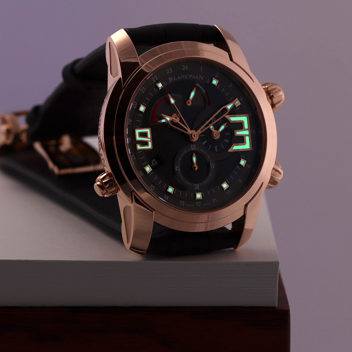 Strap: Fitted on its original Blancpain matte black alligator leather strap with a stainless steel deployant buckle. The strap is unworn in new condition with its full wear lifespan remaining.