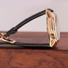 Case: Polished 18kt rose gold case. Sandblasted recessed lug sides. Black dial frame, with skeletonized areas exposing the mainplate with a fine Coates de Geneva decorated finish. Polished rose gold hands with luminous fill. Applied polished rose gold hour markers with luminous fill. Printed minutes track. Small seconds sub-dial at 6 o'clock. Date window at 9 o'clock.