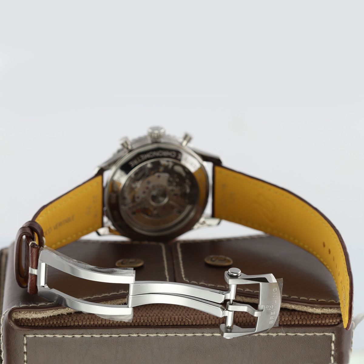 - Fitted on its original Breitling brown alligator leather strap with contrasting off-white stitching & a stainless steel push button deployant clasp. The strap is unworn, in new condition with its full wear lifespan remaining.