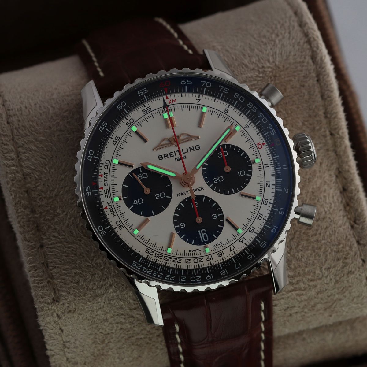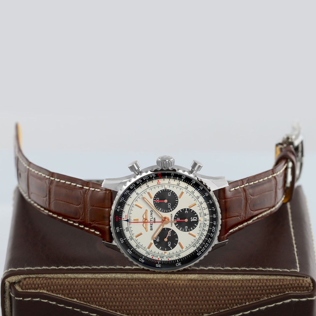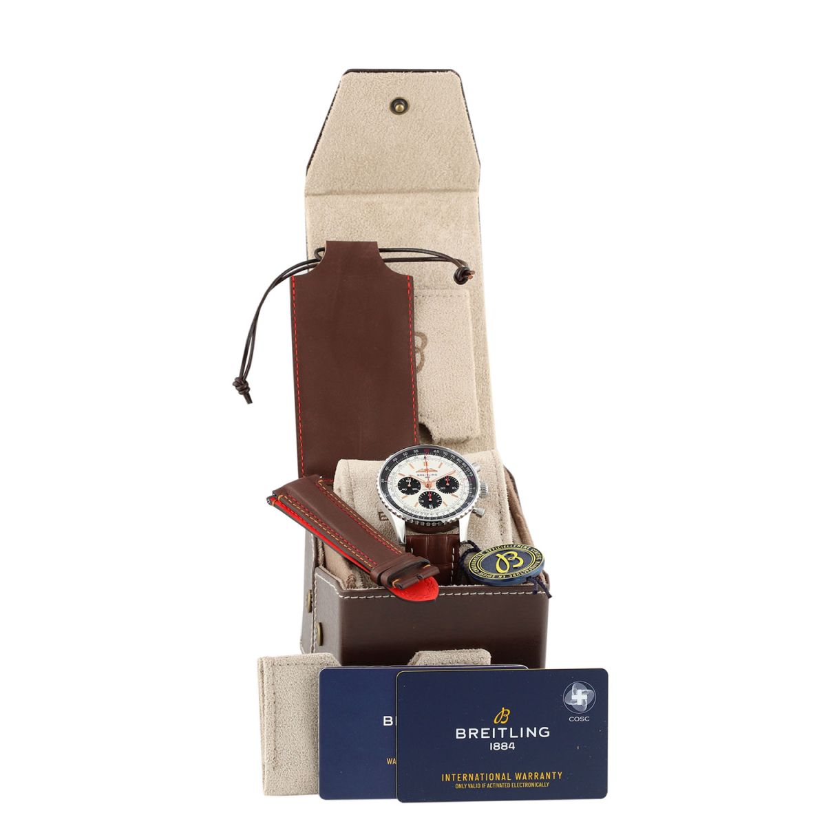 - Delivered with an additional original Breitling brown calfskin leather strap with double saddle stitching in red & orange. The strap is brand new & unworn with its full wear lifespan remaining.