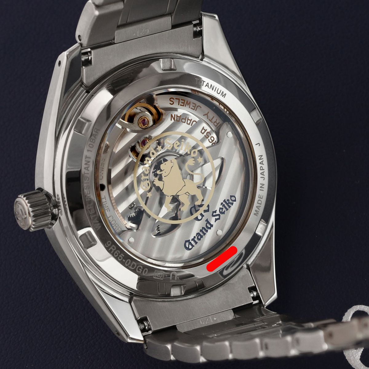 Case: Brushed & polished titanium case. The dial features Grand Seiko's very unique soft silvery pink dial with a patterned finish texture. The dial color ranges from silver with a hint of pink to a mild pink color depending on the angle & lighting. Faceted brushed & polished hour & minute hands. Polished central seconds hands. Applied brushed & polished faceted index hour markers. Fine printed minute/seconds track on the dial flange. Date window at 3 o'clock.