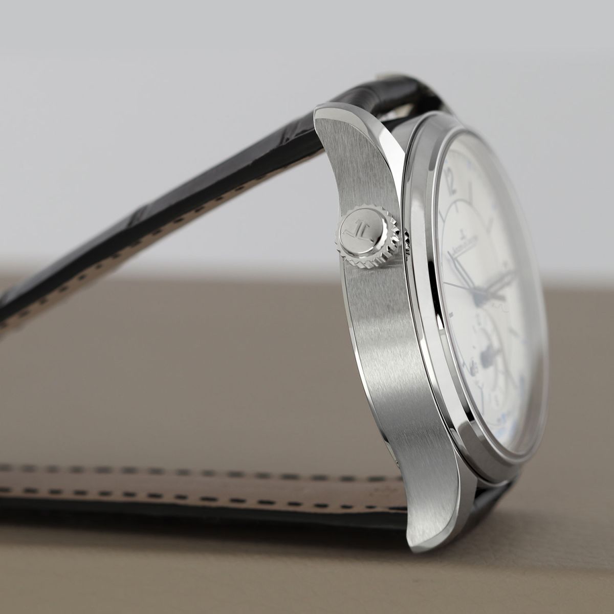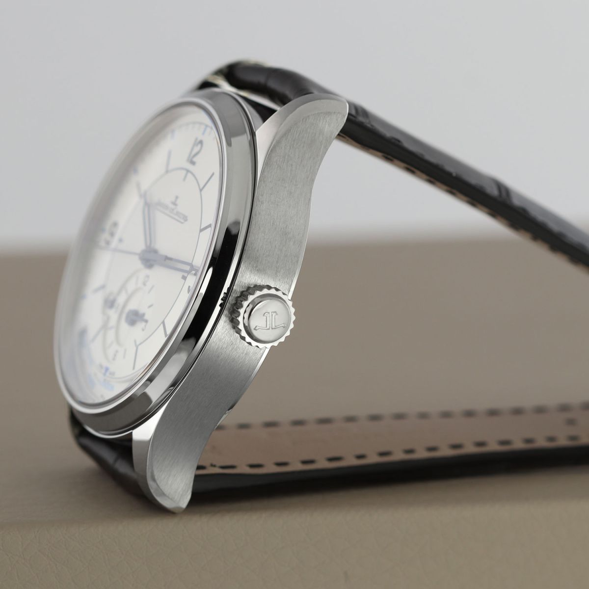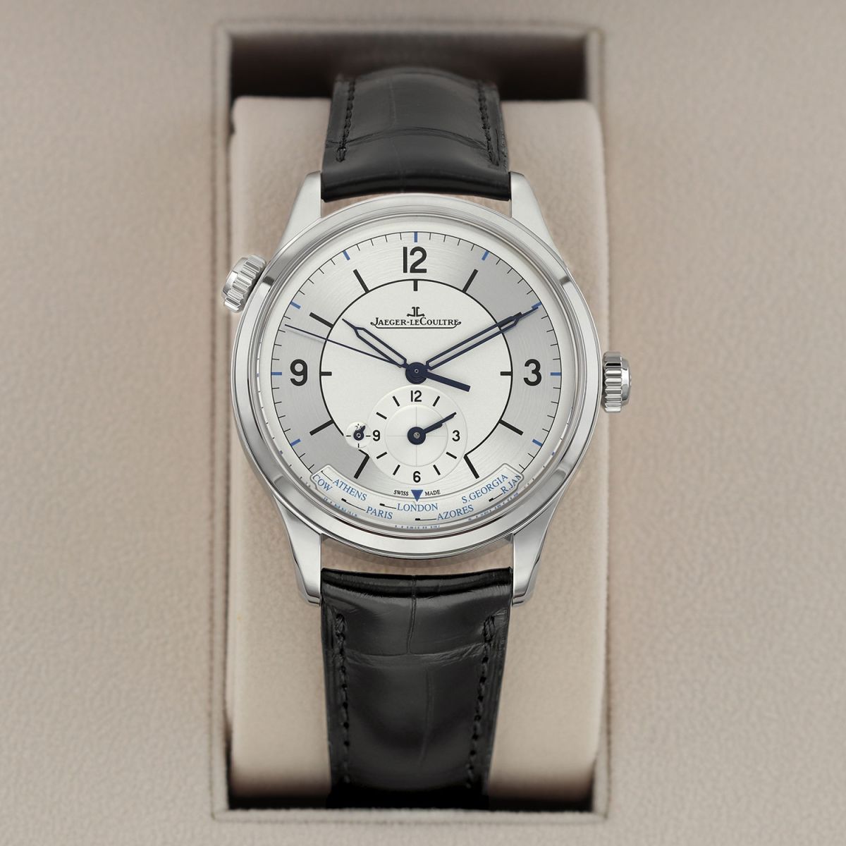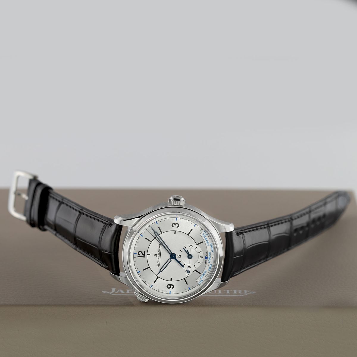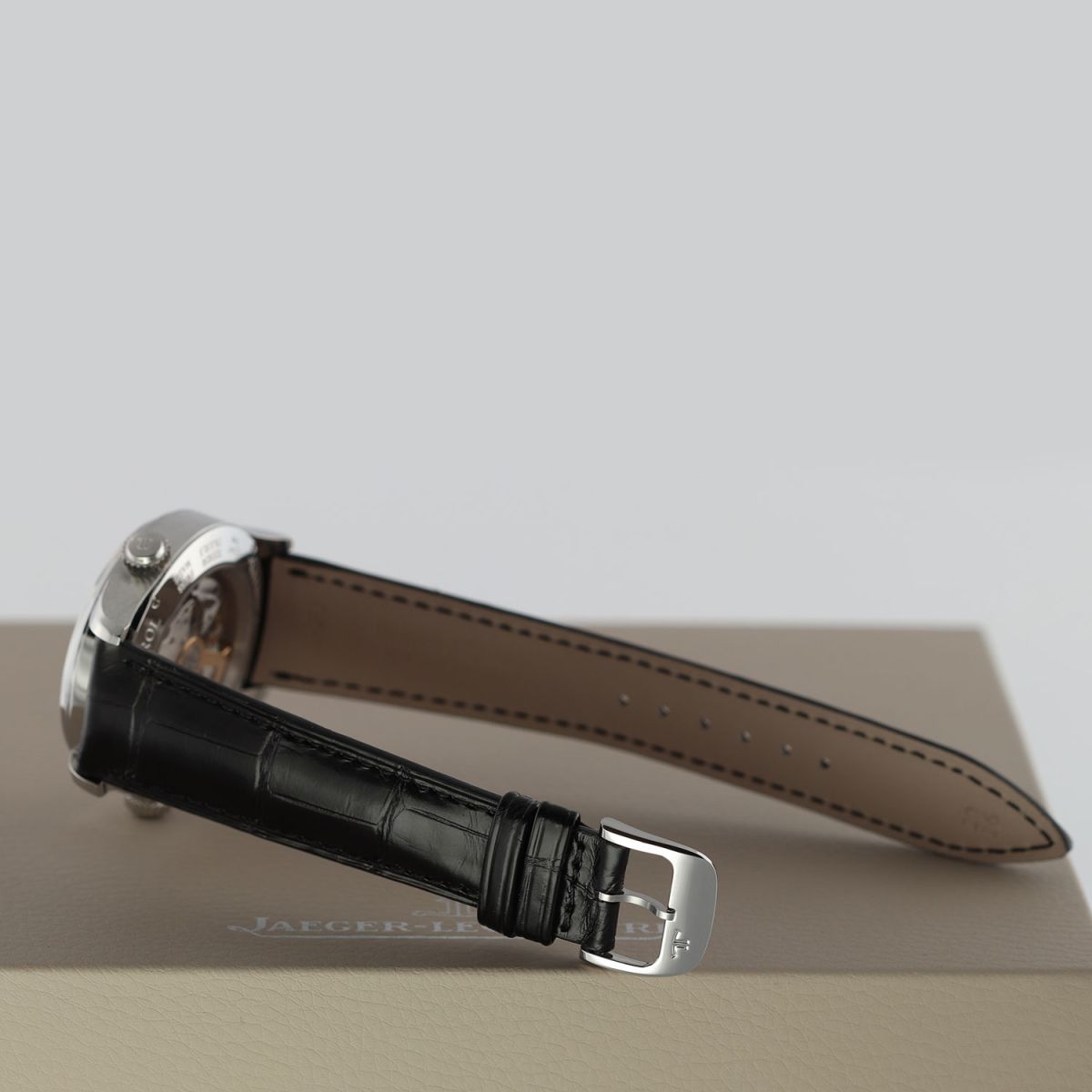 Strap: Fitted on a new JLC original black alligator leather strap with a stainless steel tang buckle. The strap is brand new & unworn with its full wear lifespan remaining.