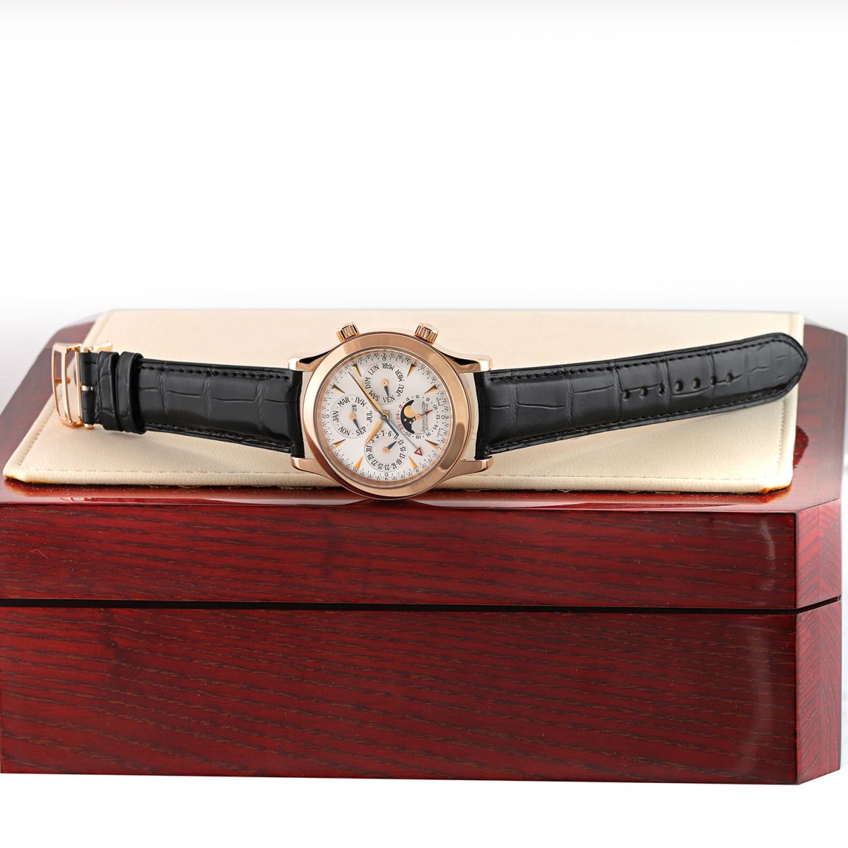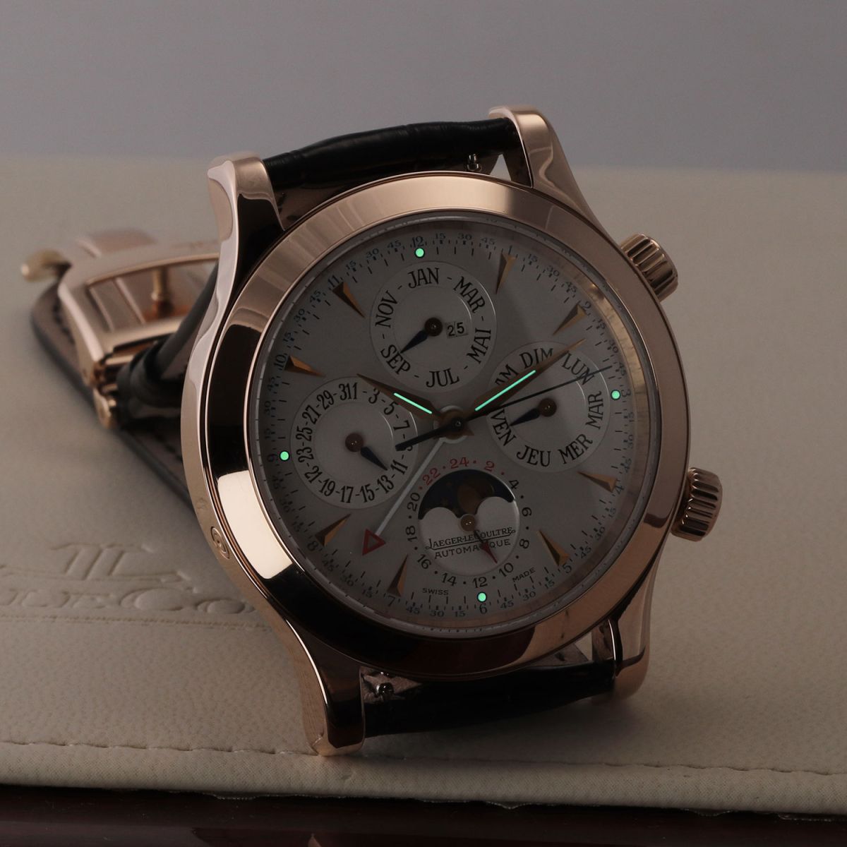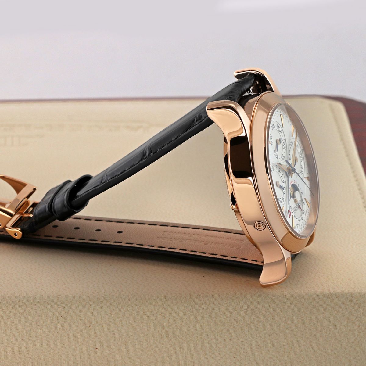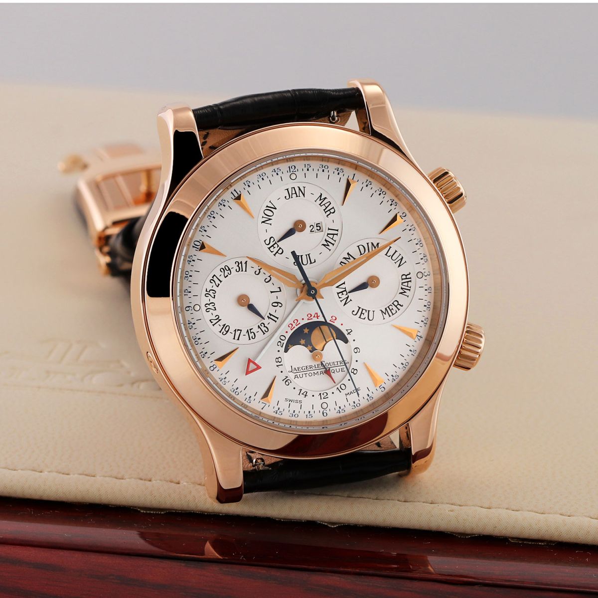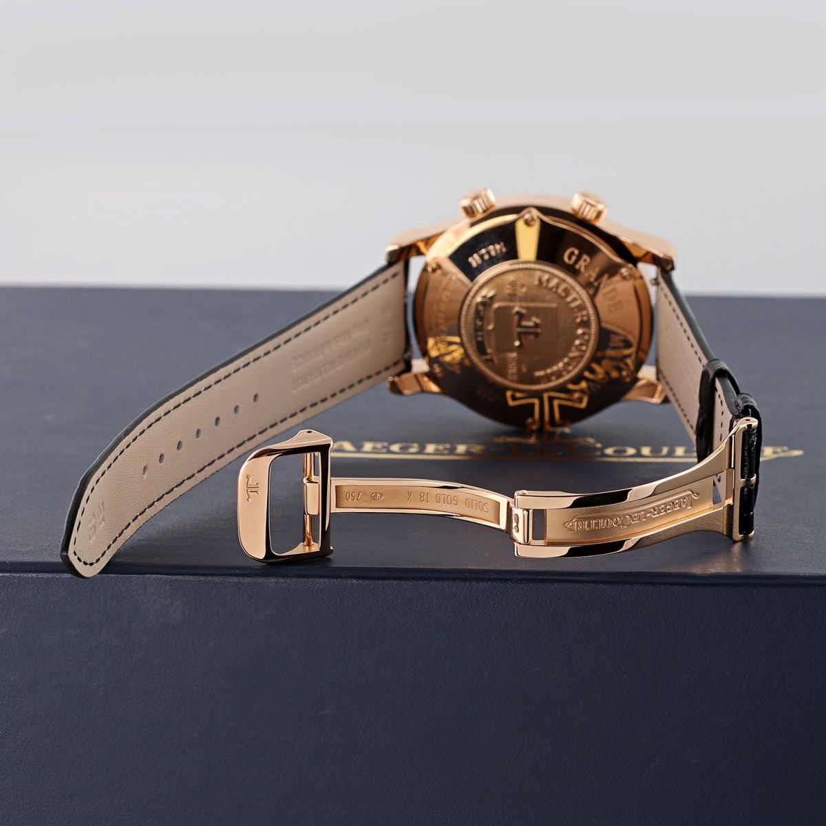 Strap: Fitted on a brand new JLC original black alligator leather strap with a solid 18kt rose gold deployant buckle. The strap is brand new, unworn & crisp with its full wear lifespan remaining.