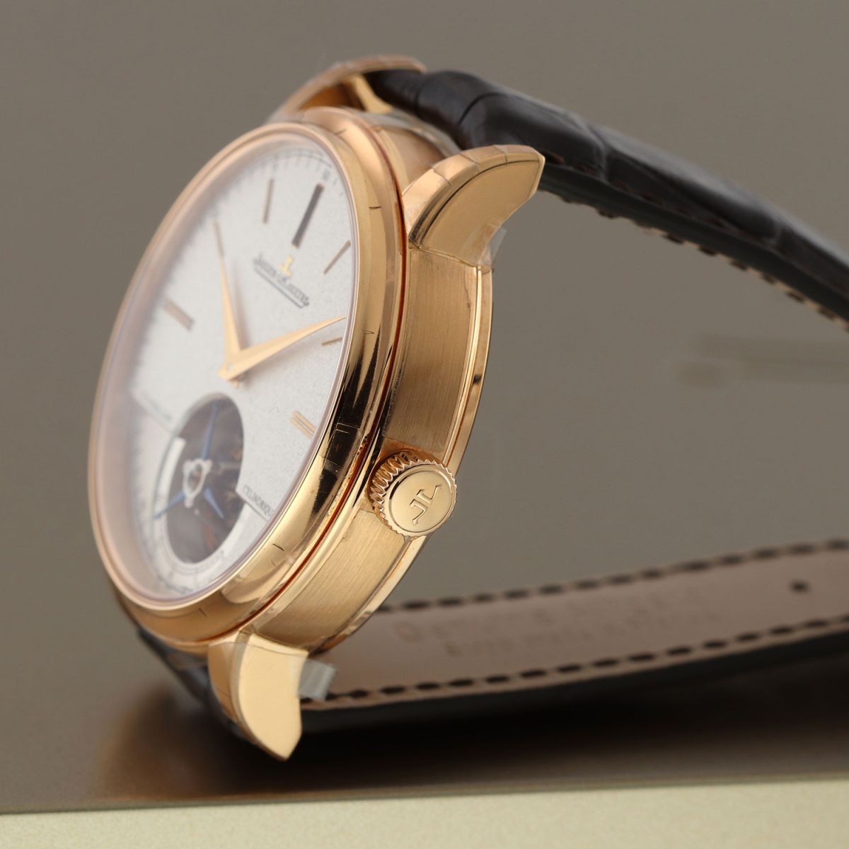 Strap: Fitted on its original JLC brown alligator leather strap with a solid 18kt rose gold deployant buckle. The strap is unworn and in near-new condition, showing only minimal handling signs, but with its full lifespan remaining. We would be comfortable grading the strap in 99%+ condition.