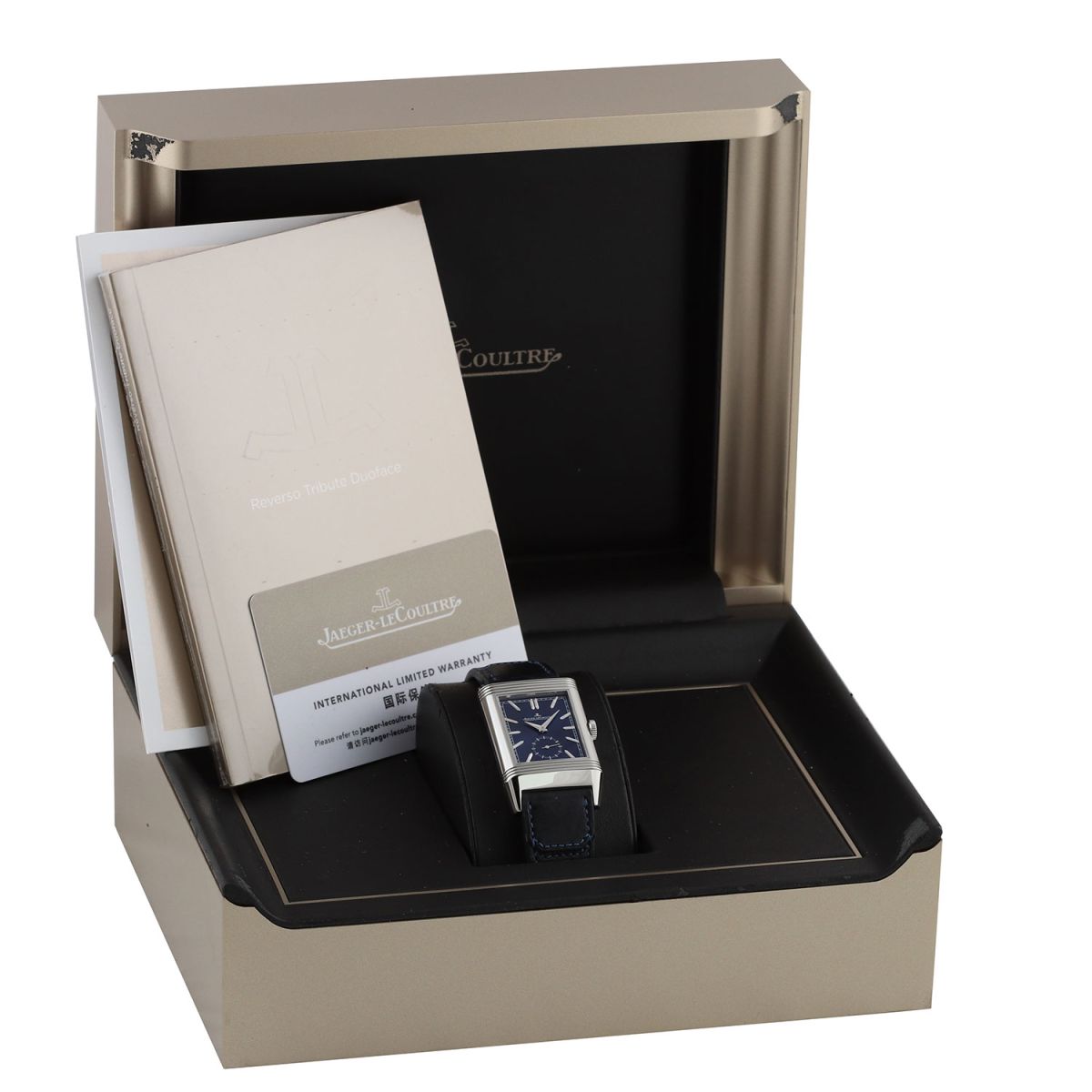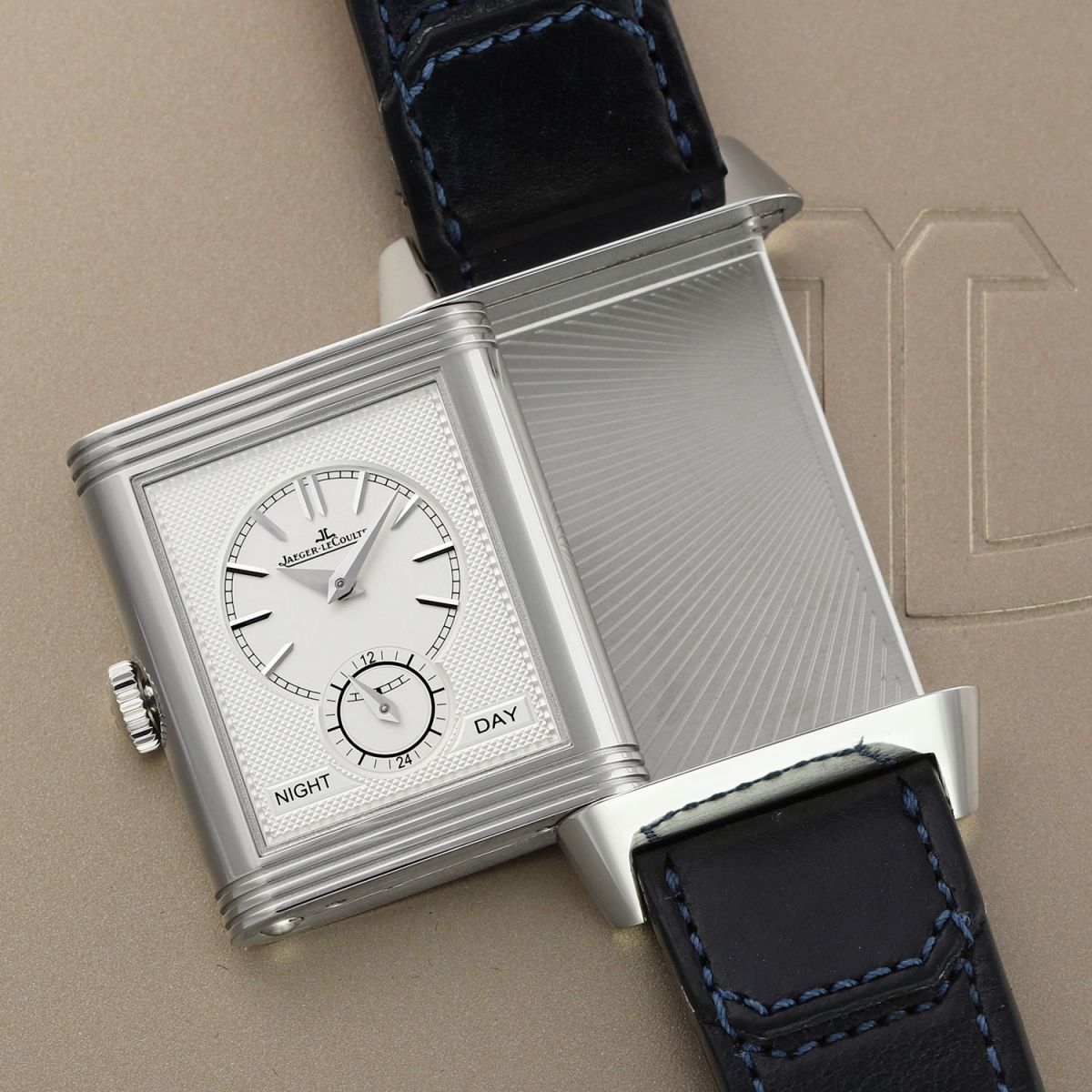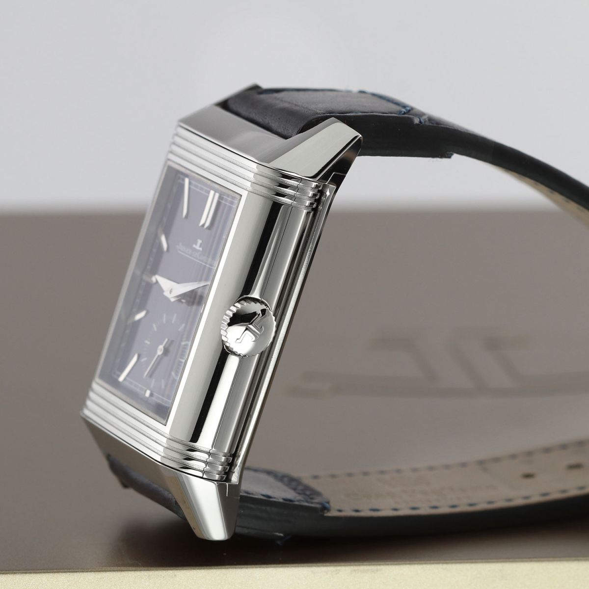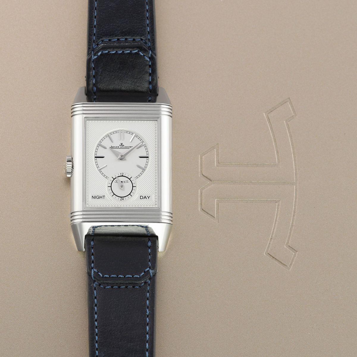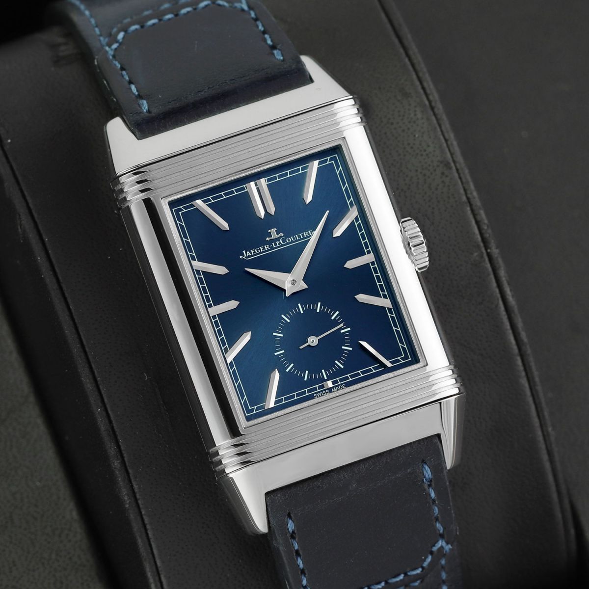 Strap: Fitted on its original Jaeger LeCoultre Casa Fagliano blue cordovan leather strap with a stainless steel deployant buckle.