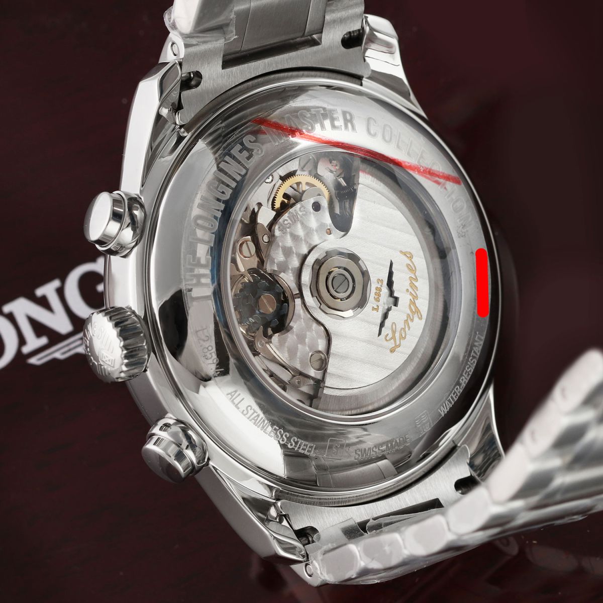 Movement: Powered by a Longines caliber L688.2 (base ETA A08.L01), beats at 28,800 vph (4Hz), contains 27 jewels 7 has a power reserve of +/- 54 hours.