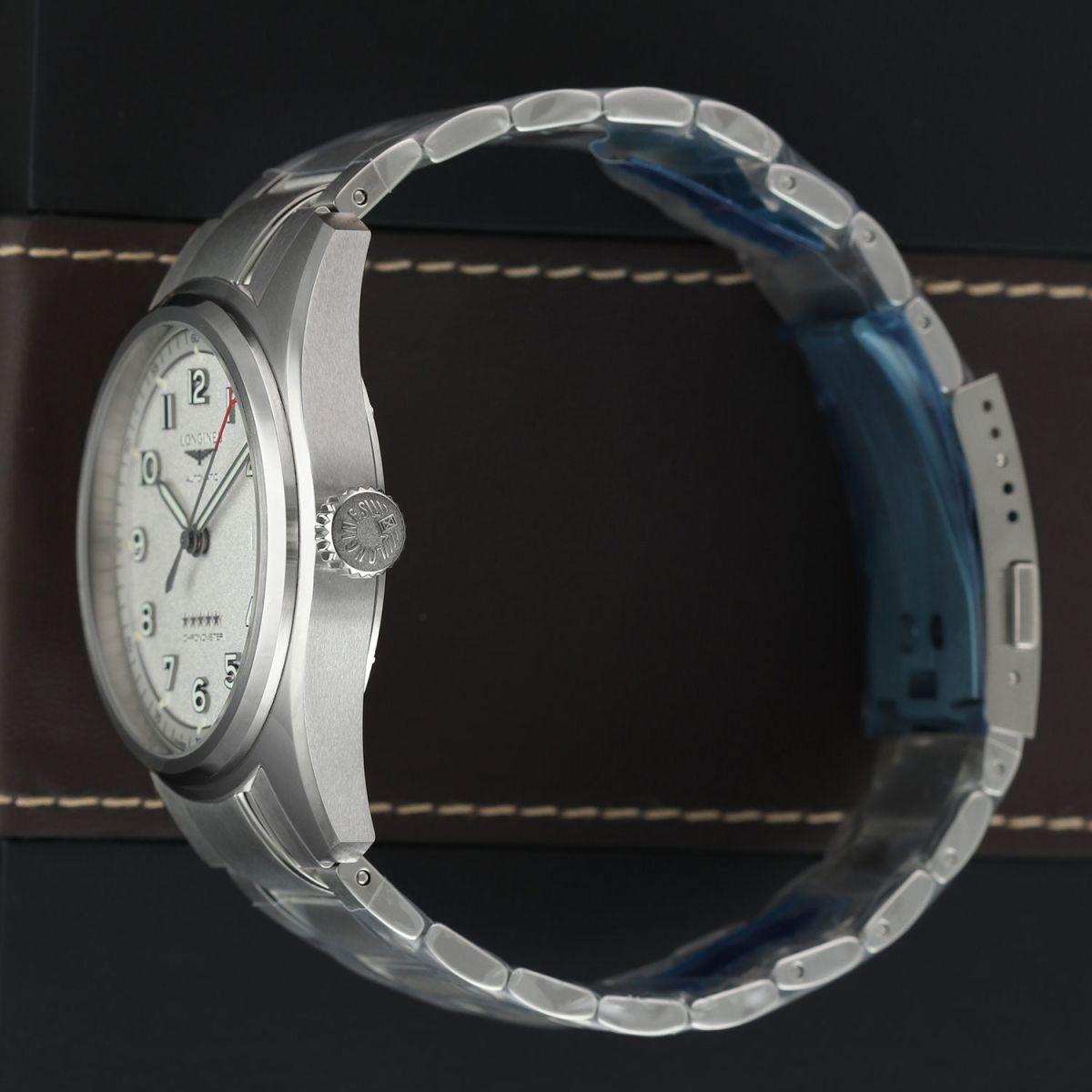 - An additional Longines original brown calfskin leather strap with contrasting white stitching & a stainless steel tang buckle. This strap is brand new & unworn with its full wear lifespan remaining.