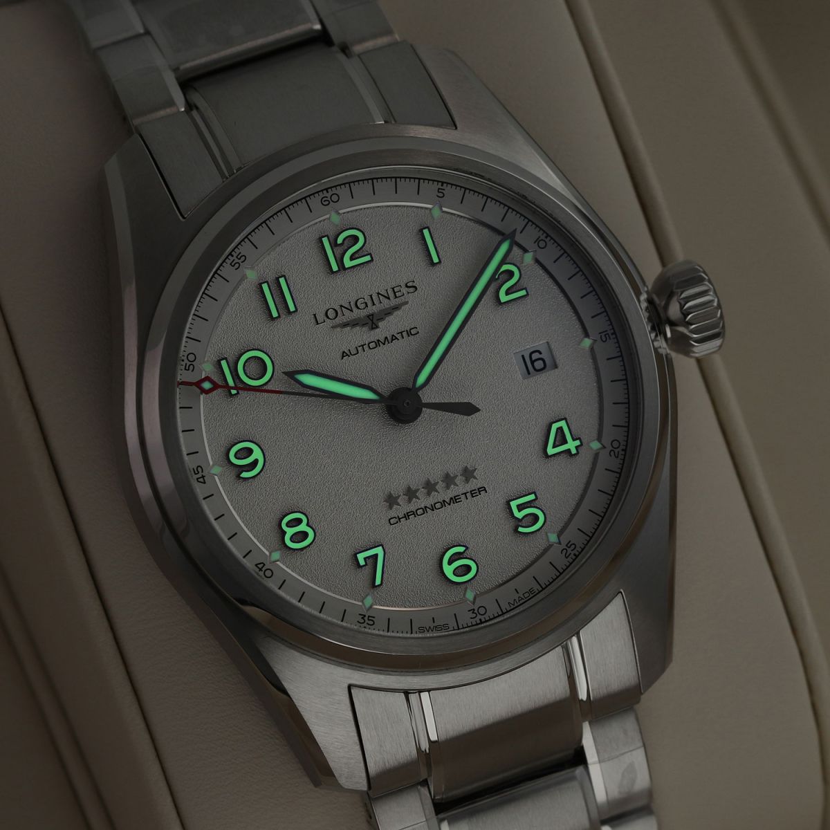 Movement: Powered by a COSC certified Longines caliber L888.4 (base ETA A31.L11), features a silicon balance spring, beats at 25,200 vph (3.5Hz), contains 21 jewels & has a power reserve of +/- 72 hours.