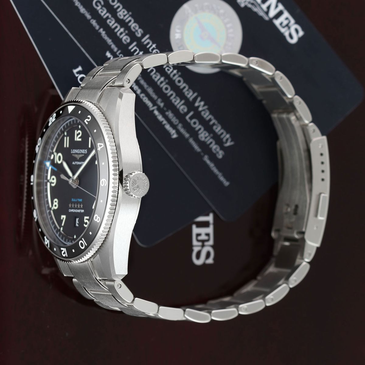 Movement: Powered by a Longines caliber L844.4 (base ETA A31.411), features a silicon balance spring, COSC Certified Chronometer, beats at 25'200 vph (3.5Hz), contains 21 jewels & has a power reserve of +/- 72 hours.