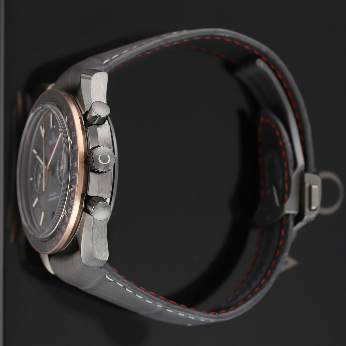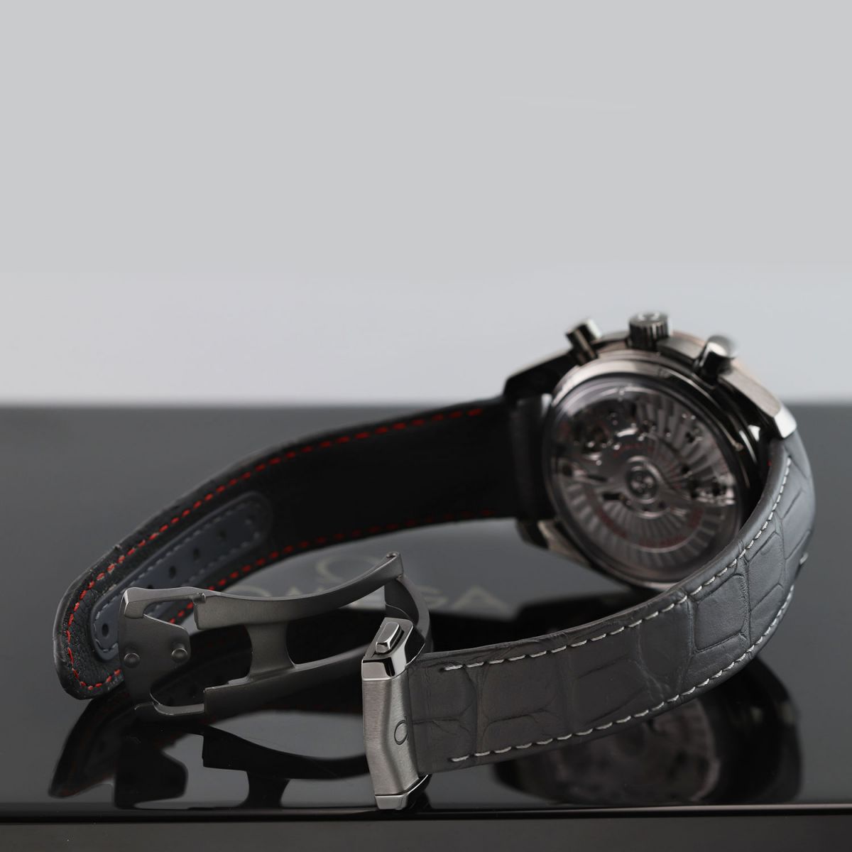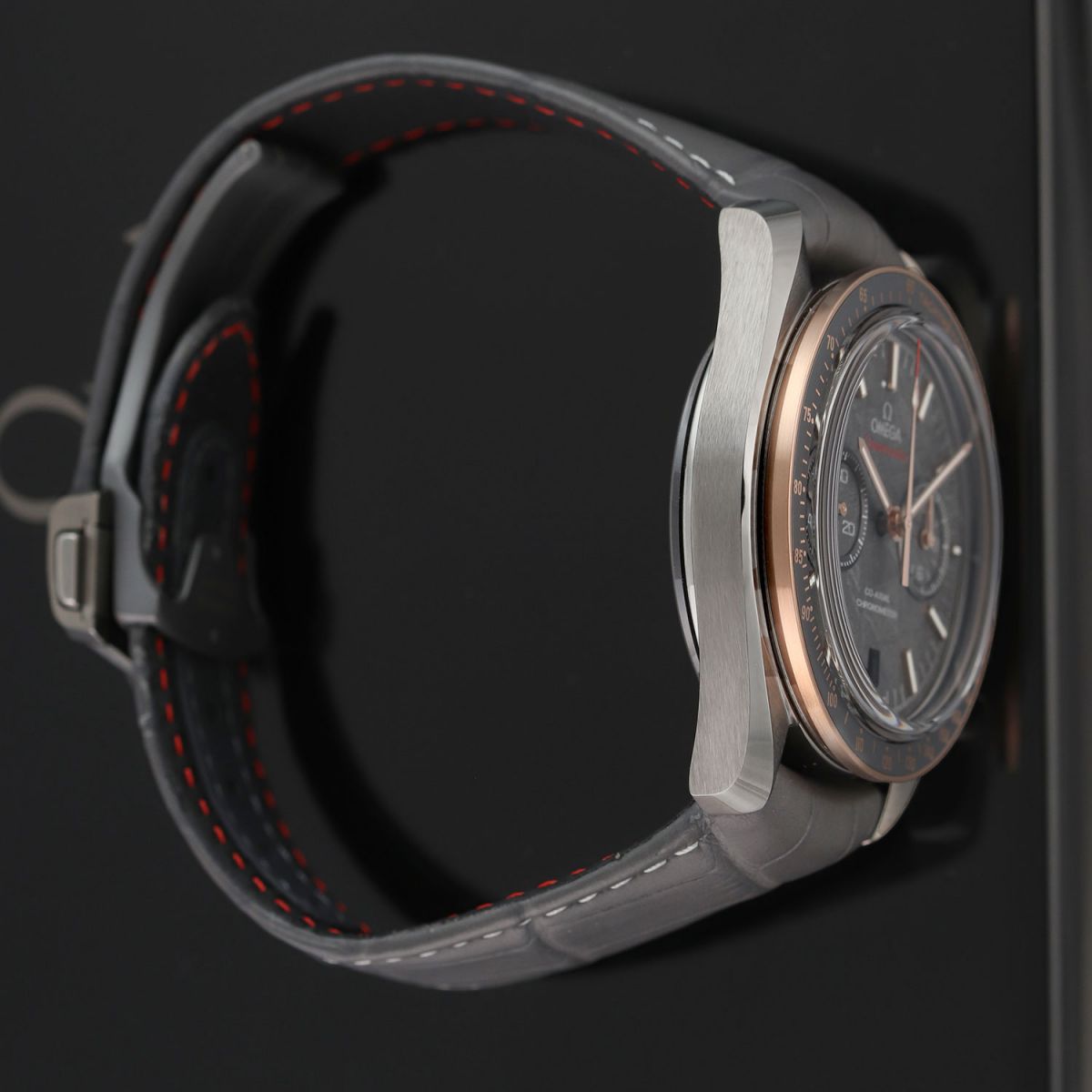 Strap: Fitted on its original Omega grey alligator leather strap with contrasting light grey stitching, and a grey ceramic & PVD coated push-button deployant buckle. The strap is in excellent condition with the majority of its wear life-span remaining. We would grade the strap as in 98% condition.