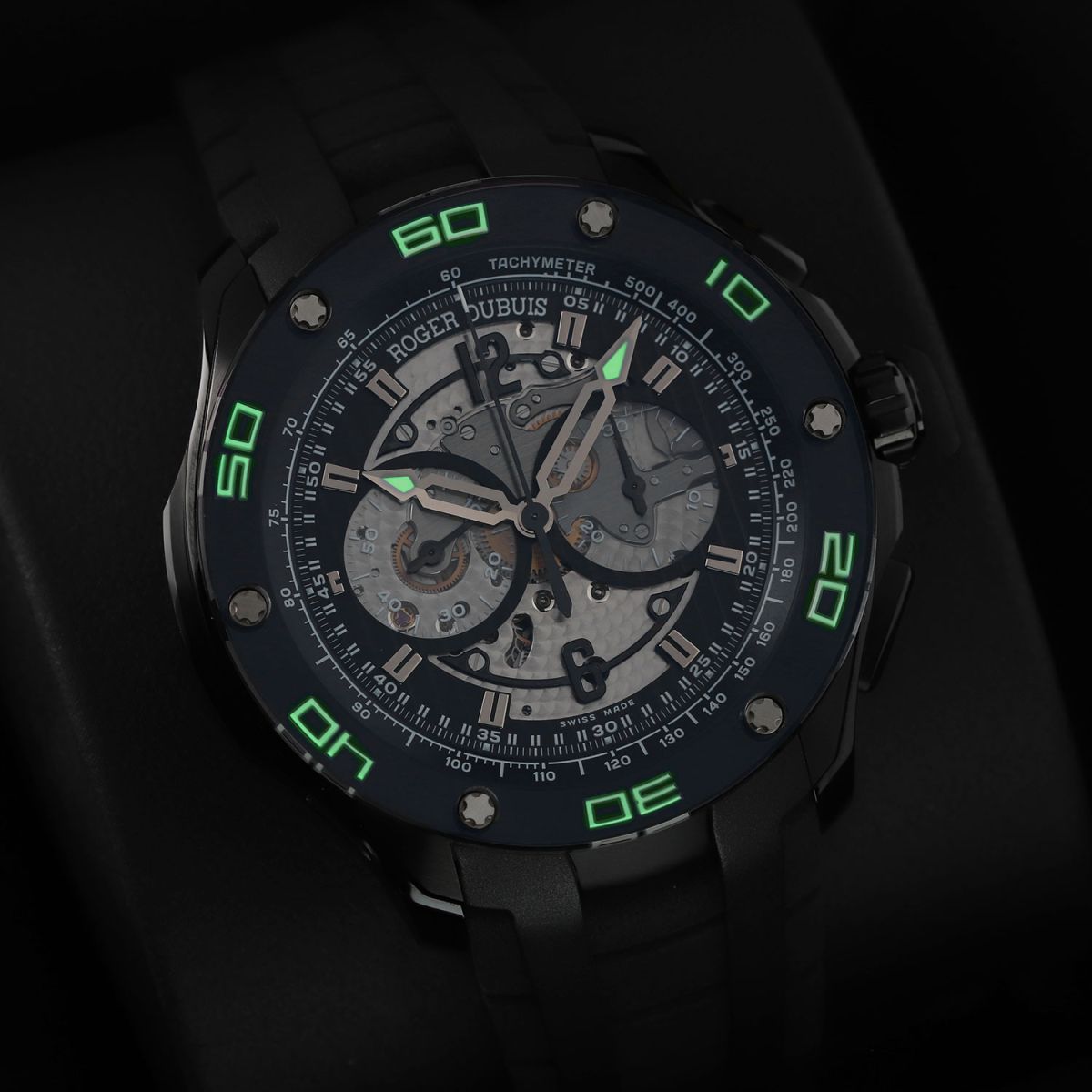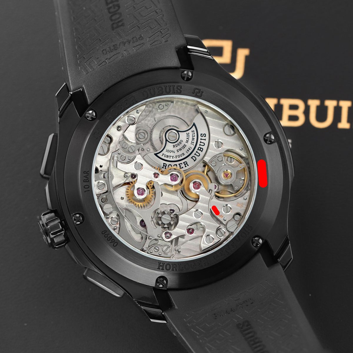 Strap: Fitted on its original Roger Dubuis black structure rubber strap with a push-button deployant buckle. The strap is brand new & unworn with its full wear lifespan remaining.