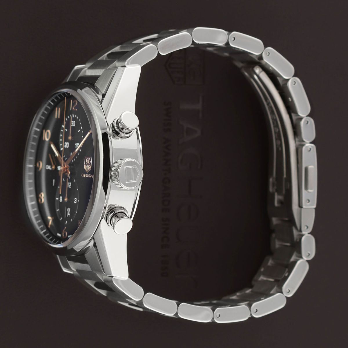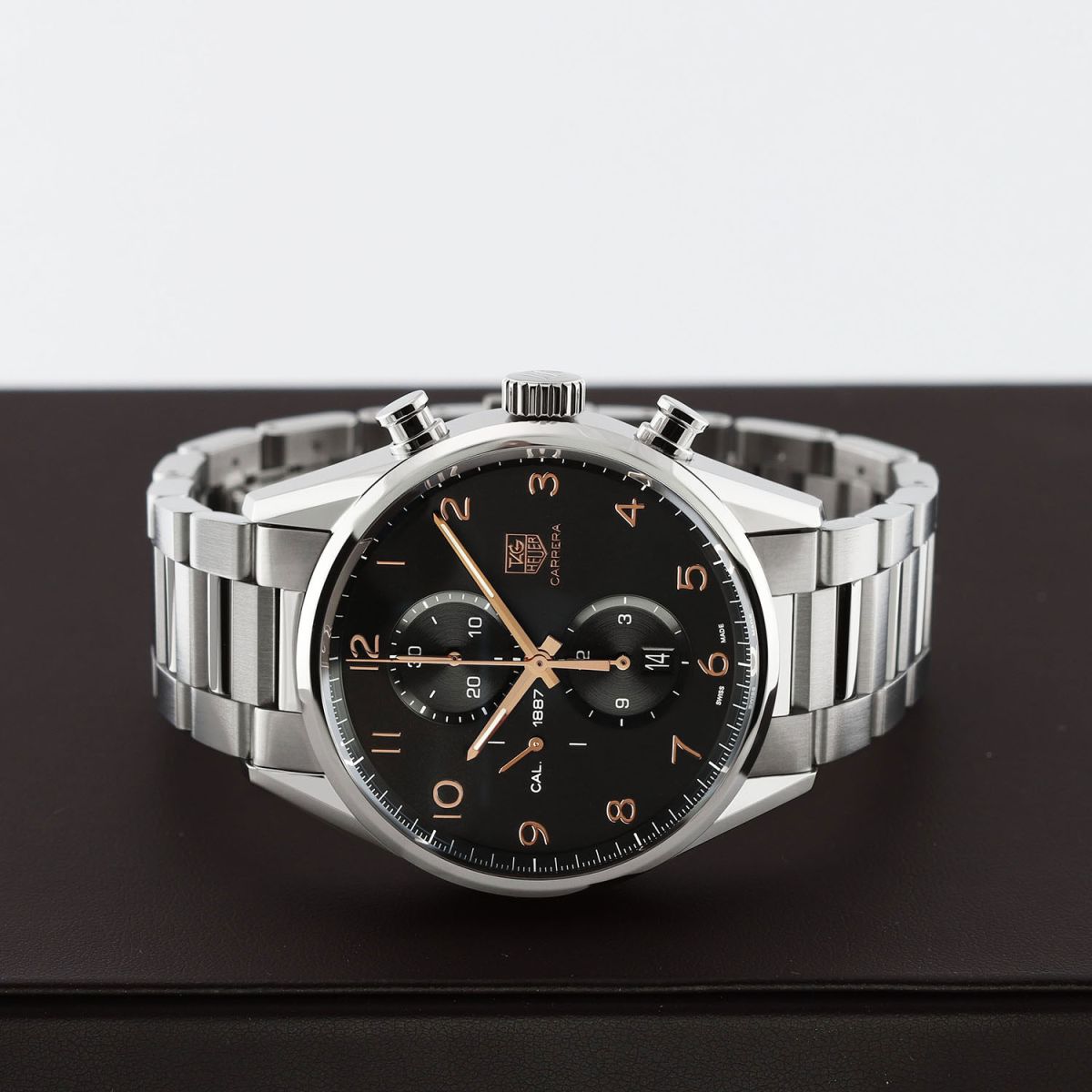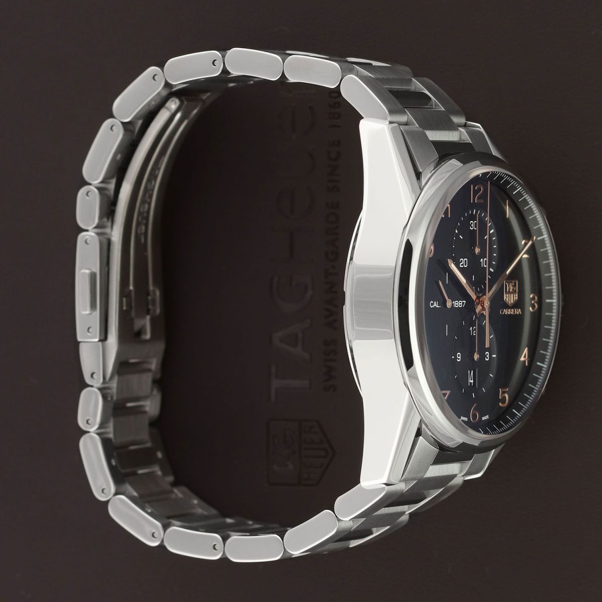 Movement: Powered by a TAG Heuer caliber 1887, beats at 28,800 vph, contains 39 jewels & has a power reserve of +/- 50 or +/- 40 hours when the chronograph is running.