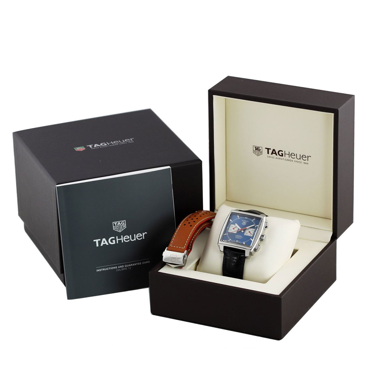 - Delivered with an additional TAG Heuer original light-brown calfskin leather strap with a stainless steel push-button deployant buckle. The strap is in excellent near-new condition with the majority of its wear life-span remaining. We would be comfortable rating this strap in 97% overall condition.