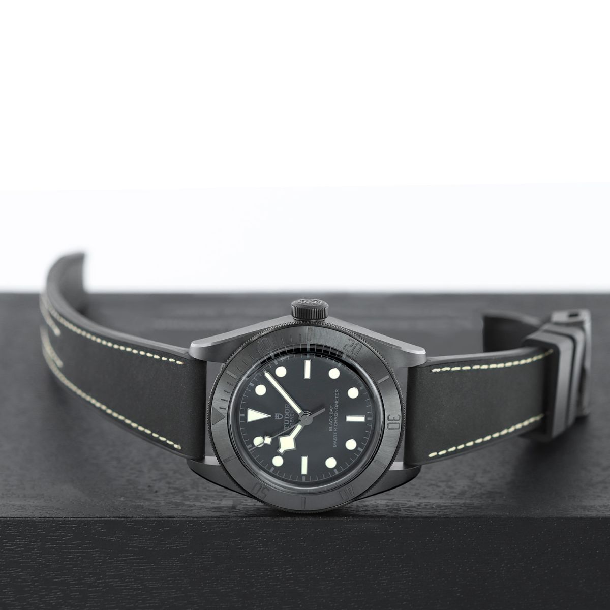 - Fitted with its original Tudor black calfskin leather with black rubber lining strap and with a matte black PVD coated stainless steel deployant buckle. The strap is excellent new brand new condition, worn a handful of times at most with its full wear lifespan remaining. We would be comfortable rating this strap in 99% overall condition.